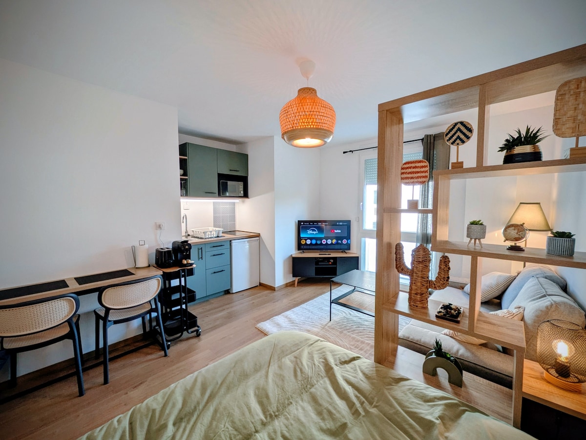 In the heart of the popular 6th arrondissement of Lyon, this pretty 24m2 one-bedroom apartment is perfect for hosting a couple, a family or professional travelers. Located 300m from the Tête d'Or park and a 15-minute walk from Part-Dieu, this ideal pied-à-terre, completely renovated in 2022, will make your stay comfortable and pleasant. You will also have a washing machine, dryer and dishwasher. Bed linen, 1 bath towel/person and sample shower gel/shampoo are also provided.