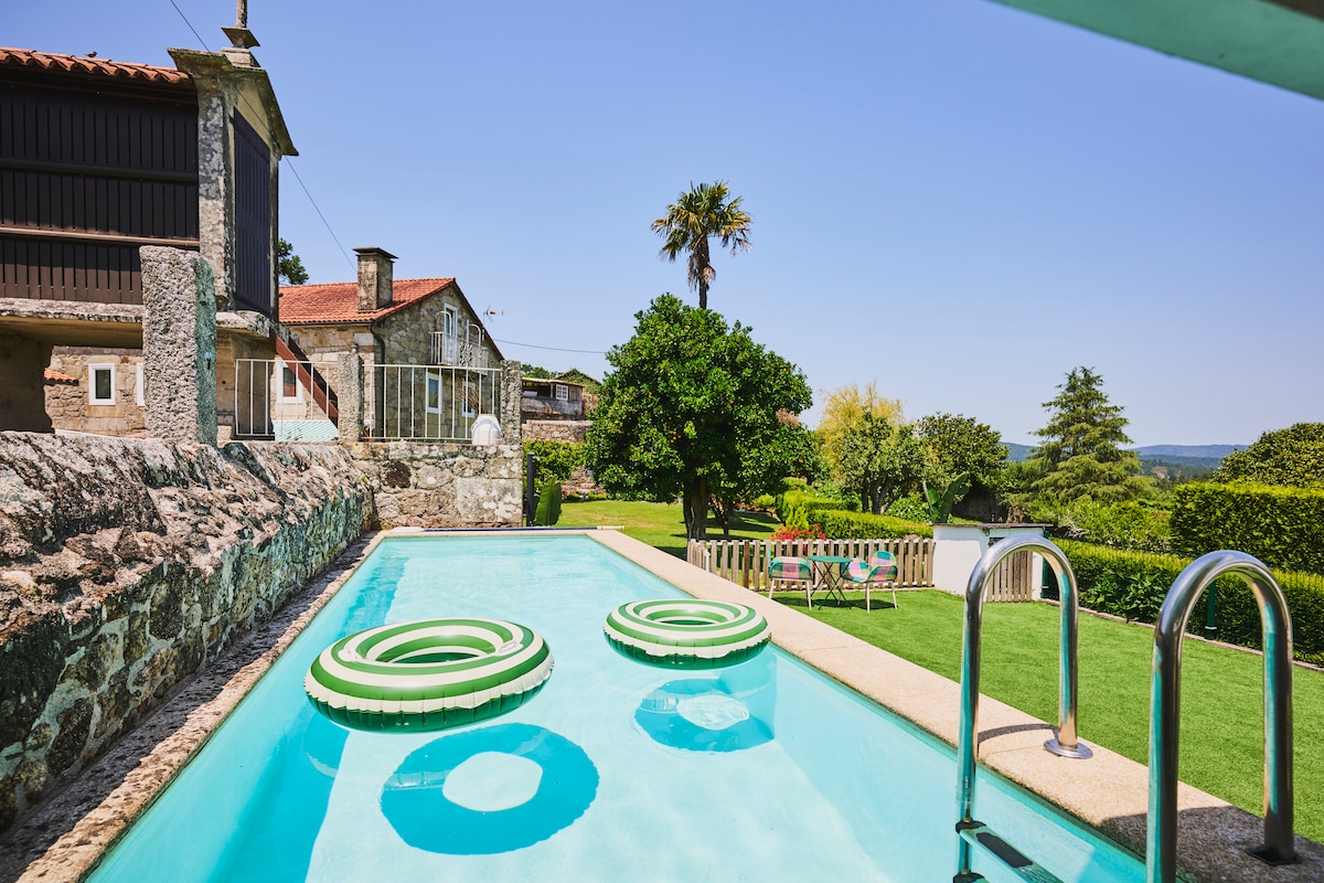 Μπουτίκ εξοχικό με 150 χρόνια ιστορίας, σε πολύ καλή τοποθεσία για να επισκεφθείτε όλη τη Γαλικία. Το σπίτι βρίσκεται σε μια κοιλάδα 15 χλμ. από το Σαντιάγο, 20' από τις παραλίες και λιγότερο από 1 ώρα από πολλά φυσικά πάρκα. Η πόλη Bertamiráns, όπου θα βρείτε όλες τις υπηρεσίες, απέχει 3 χλμ. Το σπίτι είναι ιδανικό για οικογένειες, καθώς διαθέτει 7 υπνοδωμάτια, 5 μπάνια και αρκετούς χώρους διαβίωσης. Μεγάλοι εξωτερικοί χώροι με πισίνα, αίθρια, μπάρμπεκιου, βεράντες και κήπους. Παιδική χαρά και ιδιωτικό πάρκινγκ.