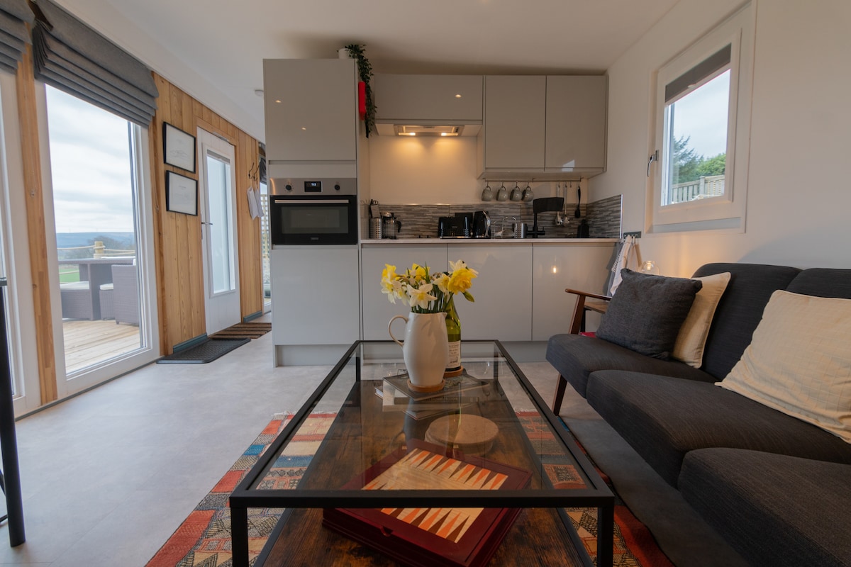 A beautiful cabin with stunning views in the heart of Loch Lomond and Trossachs National Park . Nestling in its own paddock with uninterrupted views toward the hills from a spacious balcony. Spend the evening in the wood-burning hot tub lit by twinkling fairy lights. Enjoy the outdoor furniture for an alfresco eating experience or walk to the local community owned pub. Indoors cozy up with the wood-burning stove. Finally enjoy a great shower before sleeping in the super-king size luxury bed.
