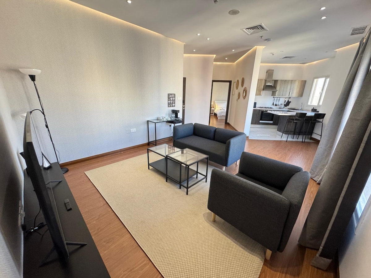 Welcome to your modern and cozy 1BR getaway in the heart of Salmiya. The apartment is designed with a clean, minimal aesthetic and a comfortable home-like feel. Enjoy ultra-fast WiFi, a premium entertainment setup, self check-in, and a calm space perfect for relaxing, working, or a long stay. Everything is brand-new, simple, and thoughtfully set up for a smooth experience.