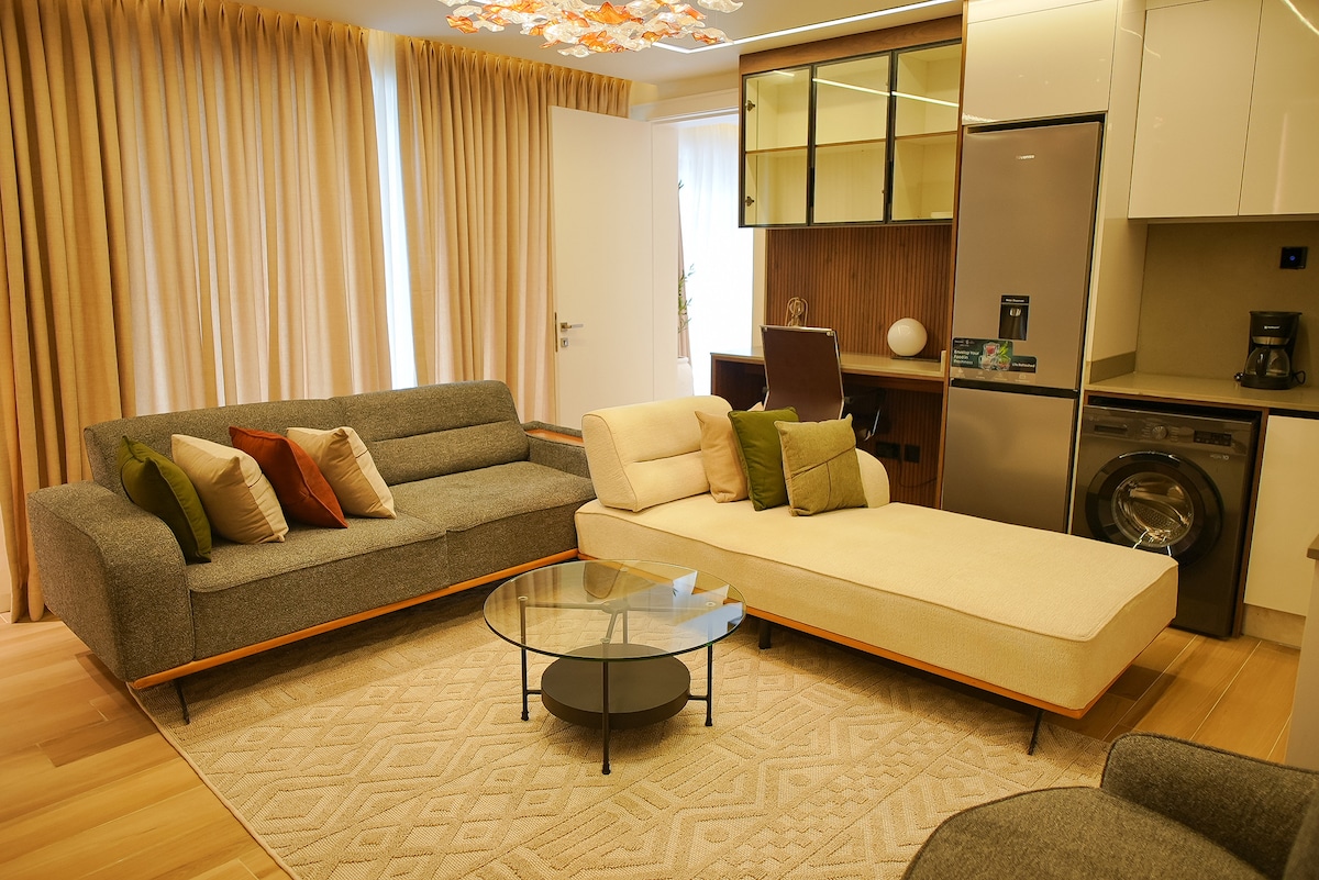 Φωλιασμένο μέσα σε ένα γαλήνιο και ασφαλές κτήμα στο Wuye, αυτό το πολυτελές διαμέρισμα προσφέρει μια πολυτελή εμπειρία για απαιτητικούς ταξιδιώτες. Διαθέτει ένα σύστημα έξυπνου σπιτιού με βοήθεια που ενεργοποιείται με φωνή, υπερσύγχρονη ασφάλεια με παρακολούθηση εισόδου χωρίς κλειδί και είσοδο και μια προνομιακή τοποθεσία με εύκολη πρόσβαση στα μέσα μαζικής μεταφοράς, τα ψώνια και το φαγητό. Οι πρόσθετες παροχές περιλαμβάνουν άνετο πάρκινγκ και περιοδικό καθαρισμό και συντήρηση, εξασφαλίζοντας μια άνετη και βιώσιμη εμπειρία διαβίωσης.