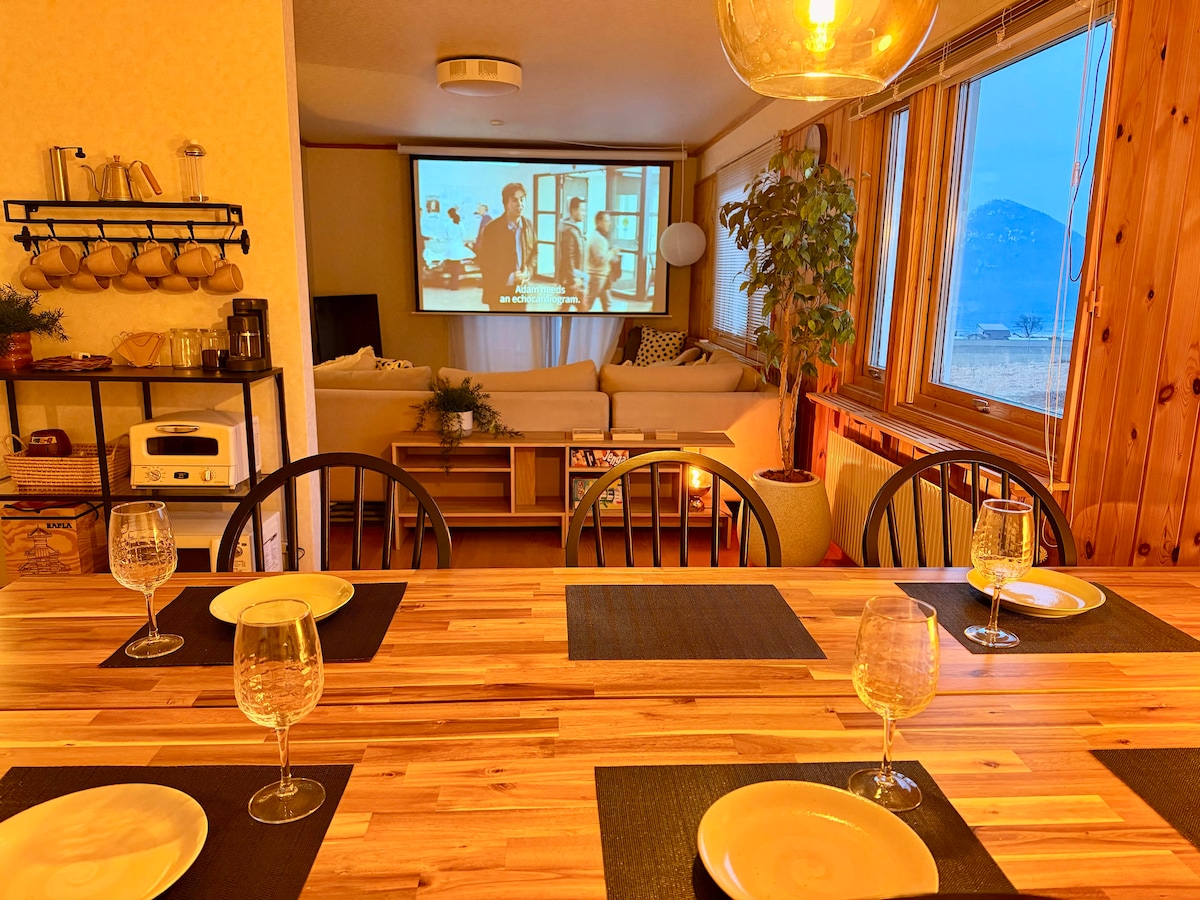 9ppl /Lake Toya/Wood Stove/120" screen & Disney+