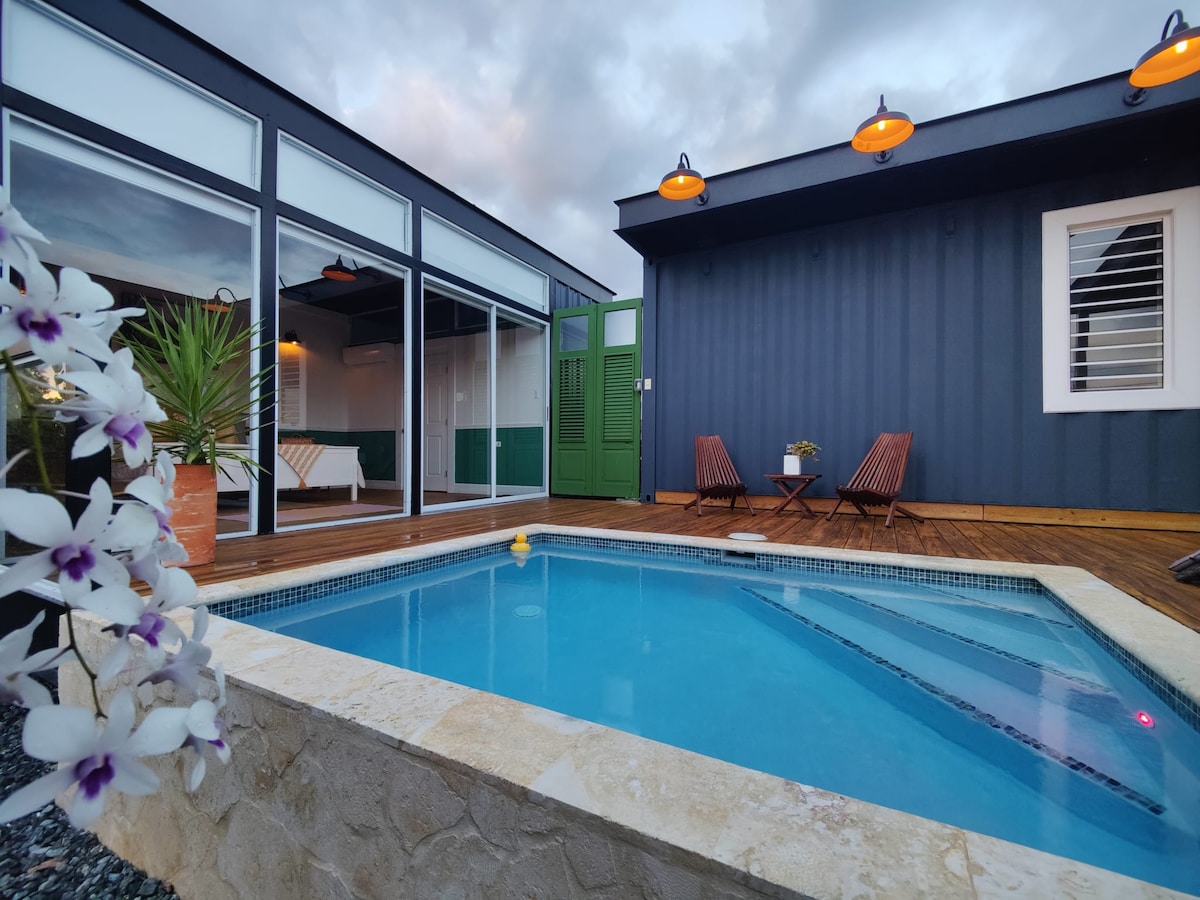 Relax and disconnect at this truly unique and tranquil getaway. This beautiful private cottage for couples located in the town of Adjuntas has a stunning natural pool, private waterfall, green roofs, relaxing hot water tub (wood fire heated), and exclusive access to the Tanama River. With more than a mile of trails to clear your mind, it promises to be excellent for your hiking, swimming, and exploration and enjoyment of nature!