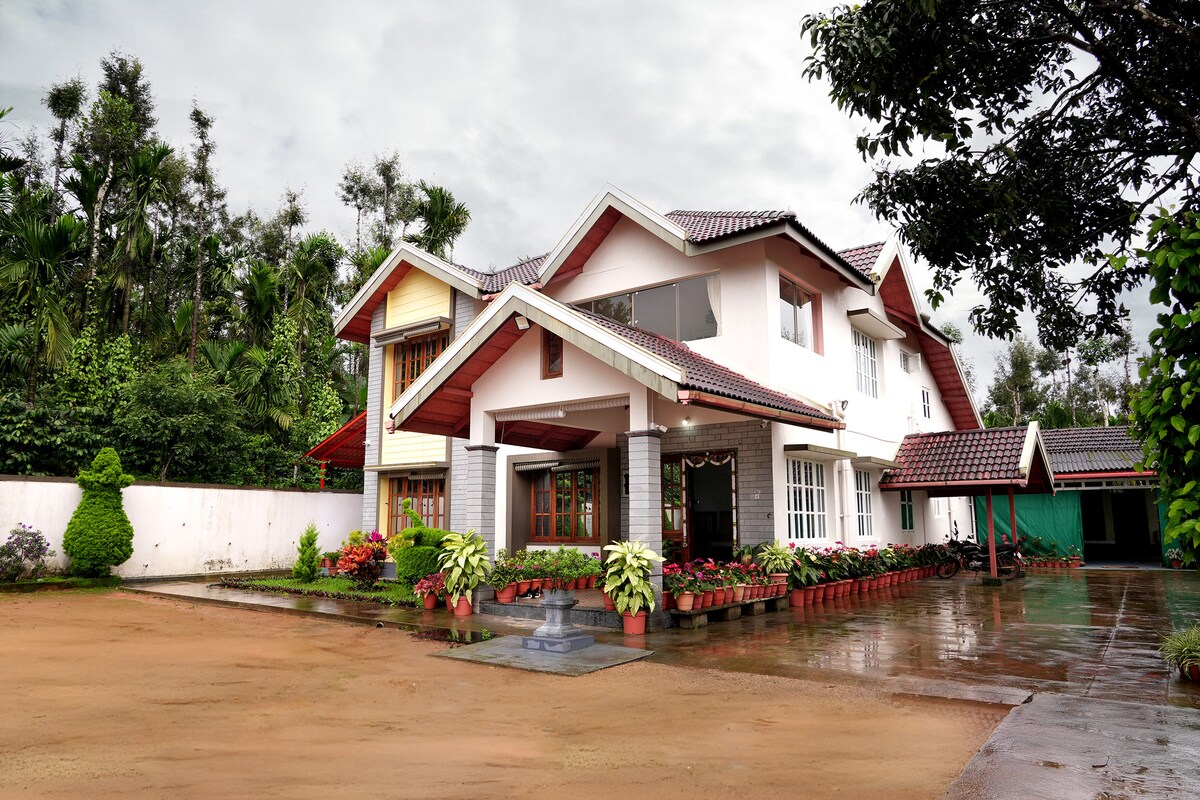 Αποδράστε στο Hoovina Mane Homestay, μια γαλήνια απόδραση στην καρδιά ενός καταπράσινου κτήματος καφέ στο Heggaravalli, Sakleshpur. Απολαύστε μια αποκλειστική διαμονή με την ομάδα σας, χωρίς άλλους επισκέπτες! Αυτή η πλήρης βίλα προσφέρει 5 άνετα υπνοδωμάτια, 4 μπάνια, νόστιμα σπιτικά γεύματα, κήπο και διασκεδαστικές δραστηριότητες όπως φωτιά, βόλεϊ, μπάντμιντον και επισκέψεις στον ποταμό Hemavathi. Κοντά θα βρείτε καταρράκτες, σημεία με θέα και σημεία για πεζοπορία. Ιδανικό για οικογένειες, φίλους και εταιρικά καταφύγια που αναζητούν τη φύση, την ιδιωτικότητα και τη χαλάρωση.
