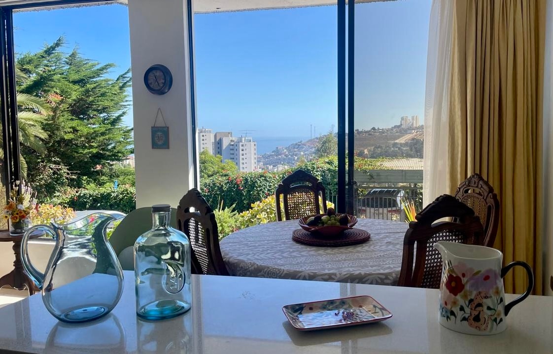 Ιδανικό διαμέρισμα για να χαλαρώσετε, να κάνετε τηλεργασία, να ξεκουραστείτε και να περάσετε αξέχαστες διακοπές. Πλήρως εξοπλισμένο για 6 άτομα. Κατάλληλο για κατοικίδια. Δύο υπνοδωμάτια με ιδιωτικό μπάνιο, το καθένα με ένα μεγάλο διπλό κρεβάτι και πλήρες μπάνιο. Ένας άνετος διπλός καναπές-κρεβάτι στο σαλόνι. Από οποιοδήποτε σημείο μπορείτε να απολαύσετε μια ασυναγώνιστη πανοραμική θέα. Ιδιωτικό πάρκινγκ στο -1. 7 λεπτά από την παραλία Reñaca, 20 λεπτά από το Vaplaraíso, 1 ώρα από το Maitencillo, 1 ώρα από την Καζαμπλάνκα (πρωτεύουσα των αμπελώνων), 2 ώρες από το Σαντιάγο.