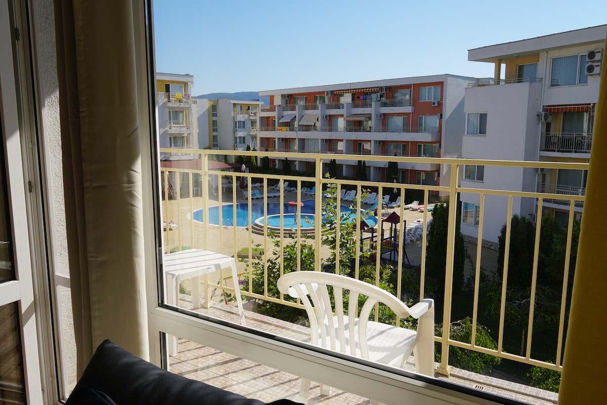 Balcony Studio in Sunny Beach with Wi-Fi and pool