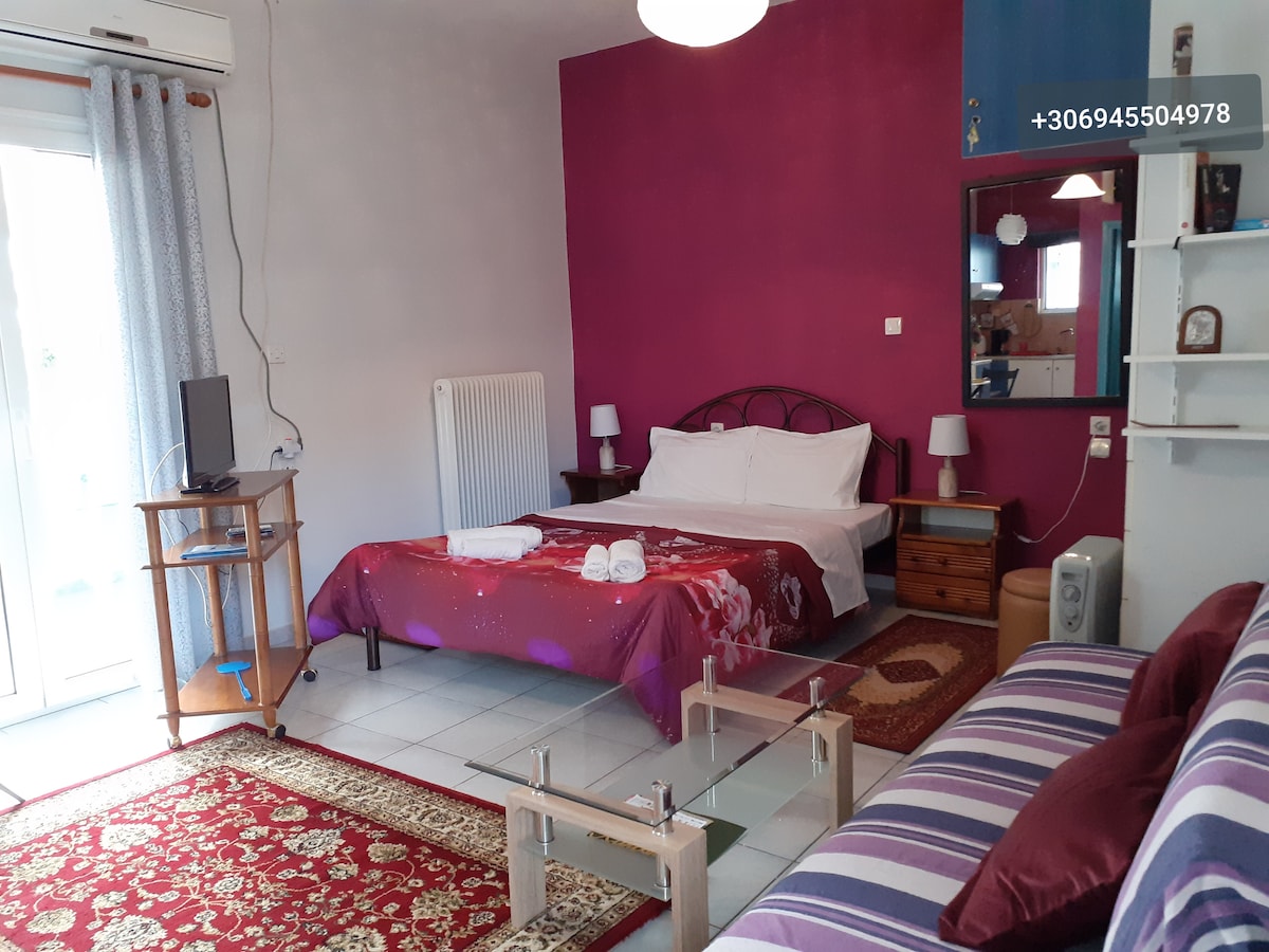 Γκαρσονιέρα, Στούντιο , ιδανικό για 3 άτομα, με κήπο και χώρο στάθμευσης. Πλήρως επιπλωμένη, θα ικανοποιήσει όλες τις απαιτήσεις των επισκεπτών. Βρίσκεται πολύ κοντά (500 μ) στην αγορά της πόλης και 1 χλμ από το λιμάνι και την παραλία όπου βρίσκονται οι καφετέριες, bar, εστιατόρια, και ουζερί. Flatlet, studio ideal for 3 persons, with garden, and private parking. Close (500m) to the market place and 1km from the harbor where you can find coffee bars, bars and restaurants. wi fi is available.