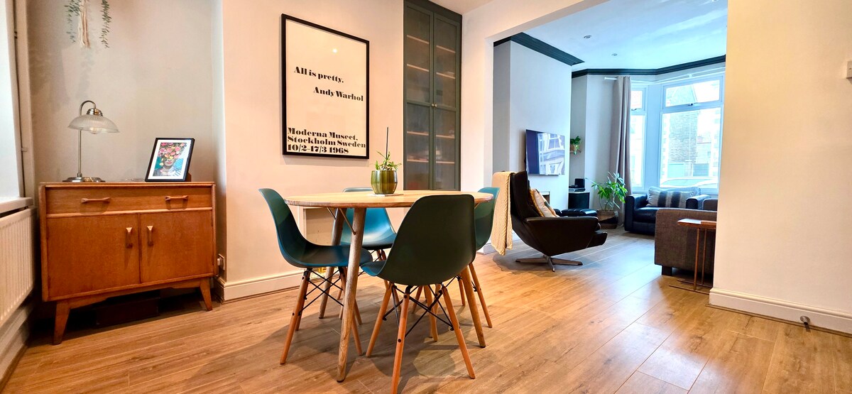 Καλώς ήρθατε στο άνετο σπίτι σας στην καρδιά του Κάρντιφ! Αυτό το γοητευτικό σπίτι με 3 υπνοδωμάτια και βεράντα φιλοξενεί έως 5 άτομα με ένα υπέρδιπλο, ένα διπλό και ένα μονό κρεβάτι - ιδανικό για οικογένειες ή μικρές ομάδες. Απολαύστε τσάι, καφέ, γάλα και μπισκότα κατά την άφιξή σας, καθώς και δωρεάν σαμπουάν και αφρόλουτρο. Το μπάνιο διαθέτει ντους και ξεχωριστή μπανιέρα με άλατα μπάνιου για ένα χαλαρωτικό μπάνιο. Διασκεδάστε με WiFi, τηλεόραση με σύνδεση στο διαδίκτυο και DVD player με μια επιλογή ταινιών. Ένα τέλειο σπίτι μακριά από το σπίτι σας για την επίσκεψή σας στο Κάρντιφ.