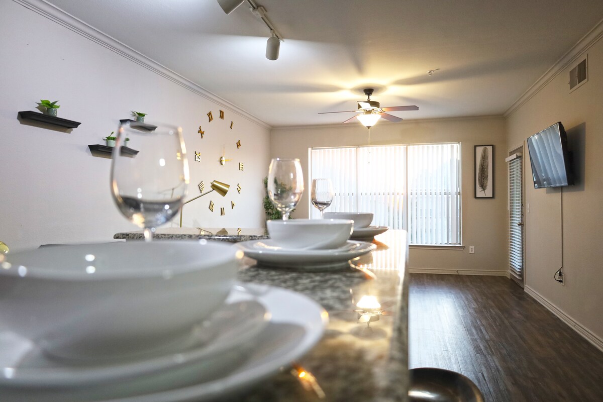 Χαλαρώστε σε αυτό το κομψό διαμέρισμα 1 υπνοδωματίου κοντά στο εμπορικό κέντρο Galleria. Η πόλη είναι γεμάτη βραβευμένα εστιατόρια, μπαρ, εμπορικά κέντρα, ιστορικά αξιοθέατα και αξιοθέατα. Περιπέτεια στην περιοχή του Ντάλας εύκολα από αυτή την προνομιακή τοποθεσία. Όταν είστε έτοιμοι να χαλαρώσετε, αποδράστε σε αυτό το άνετο διαμέρισμα. ✔ Πλήρως εξοπλισμένη κουζίνα ✔ Άνετο υπνοδωμάτιο με κρεβάτι queen size ✔ Δύο έξυπνες τηλεοράσεις 4k UHD Χώρος εργασίας✔ γραφείου Wi-Fi ✔ υψηλής ταχύτητας ✔ Δωρεάν πάρκινγκ σε γκαράζ Μάθετε περισσότερα παρακάτω!