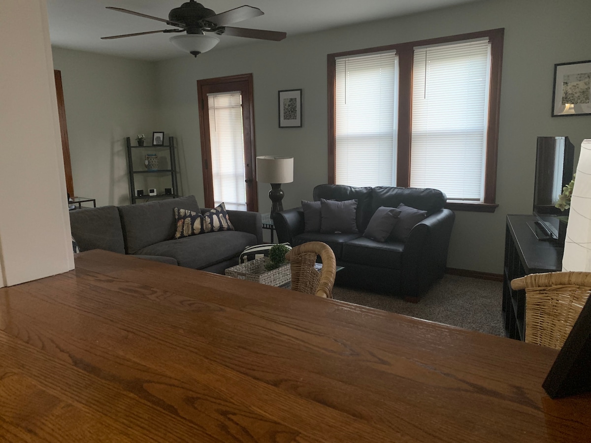 Χαλαρώστε σε αυτόν τον ήρεμο, κομψό χώρο. 5 λεπτά από το Target και σε κοντινή απόσταση με τα πόδια από το CVS, τη βιβλιοθήκη και μερικά τοπικά εστιατόρια. Απολαύστε το ιδιωτικό πλυντήριο και στεγνωτήριο στο κατάλυμα. Ήσυχος δρόμος Κουρτίνες συσκότισης 100% στην κρεβατοκάμαρα 2 τηλεοράσεις - Συνδεθείτε στο προσωπικό σας Netflix, κεραία τηλεόρασης για τοπικά κανάλια στο σαλόνι. Πρόσθετα: Τραπέζι 2 ατόμων στη μπροστινή βεράντα. Το πάρκινγκ είναι στον ιδιωτικό δρόμο, επιπλέον πάρκινγκ μπροστά από το σπίτι.