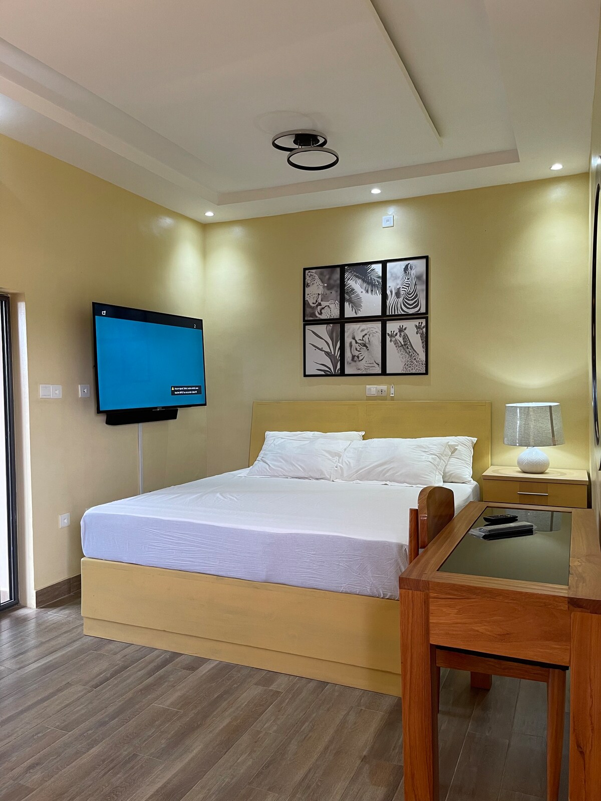 ⚠️ Veuillez noter que l’électricité est entièrement à la charge du voyageur durant son séjour. ⚡ Appartement d'une chambre au style moderne et occidental, alliant confort et élégance. Idéal pour une vie urbaine et une décoration contemporaine. A modern one-bedroom apartment featuring sleek design elements, open-concept living spaces. It includes a stylish kitchen, a cozy living area, and a comfortable bedroom, all adorned with neutral tones perfect for a chic urban lifestyle