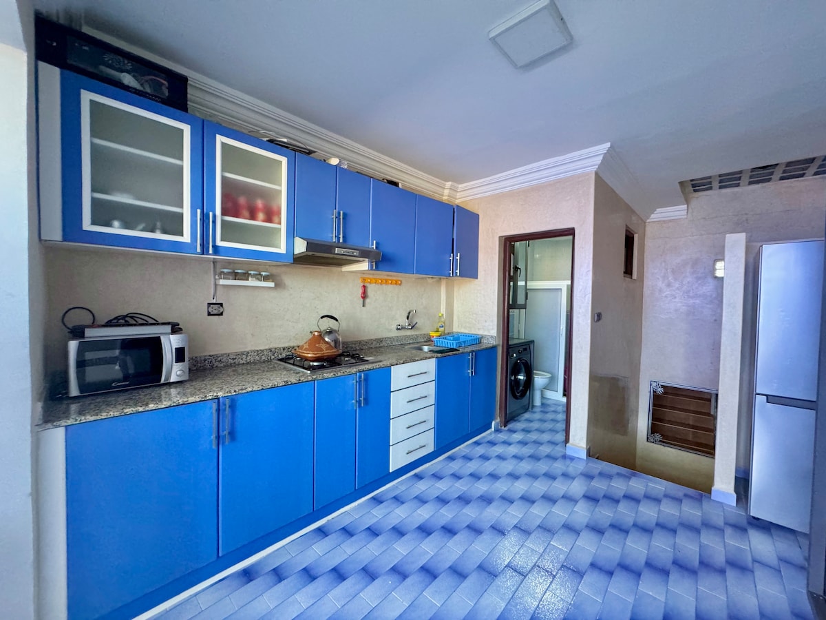 Offrez-vous un séjour inoubliable dans ce magnifique T4 de luxe idéalement situé ! À deux pas du Grand Bazar (Souk Al Had) et 5 min en taxi de la plage, profitez d’un emplacement parfait. Avec ses 3 chambres confortables, son salon moderne 🛋️, une cuisine équipée 🍴, une terrasse privée avec barbecue 🌅 et des services inclus comme le petit-déjeuner 🥐 et le ménage, chaque détail est pensé pour un séjour magique. 🌟
