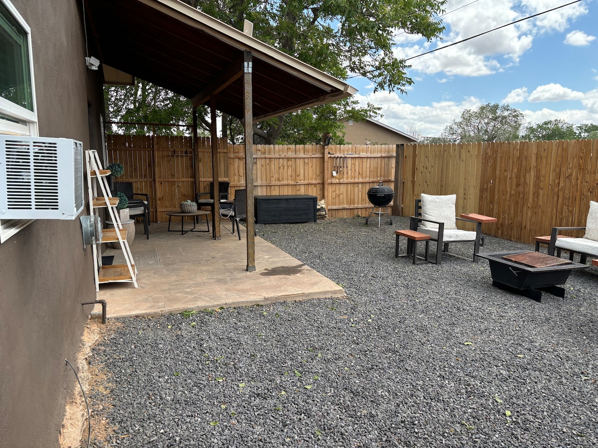 Ήσυχη σουίτα στη νότια πλευρά της Σάντα Φε σχεδιασμένη για χαλάρωση. Βρίσκεται στο Southside κοντά στο 599 και 20 λεπτά από την πλατεία. Το κύριο δωμάτιο είναι σε στιλ στούντιο με μικρό σαλόνι, κρεβάτι queen size και χώρο φαγητού/εργασίας. Χώρος κουζίνας με όλα όσα θέλει ένας λάτρης του καφέ ή του τσαγιού - φούρνος μικροκυμάτων, βραστήρας νερού, καφετιέρα, φριτέζα αέρα και μικρό ψυγείο με καταψύκτη. Ντους χωρίς σκαλοπάτια και φυσικό φως στο μπάνιο. Η σουίτα είναι μέρος του σπιτιού μας με κοινό τοίχο, αλλά έχει δική της είσοδο και αίθριο.