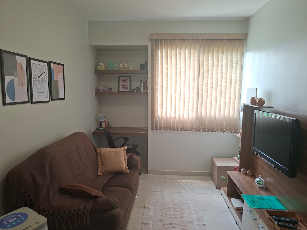 Μείνετε με όλη την οικογένεια σε ένα πολυκατοικία που μοιάζει με κλαμπ, με πολύ χώρο για διασκέδαση στις θερμαινόμενες, στεγασμένες πισίνες και την πισίνα στην παραλία. Έχουμε ένα καλυμμένο γκαράζ. Διαμέρισμα με 2 υπνοδωμάτια, ένα από τα οποία έχει δικό του μπάνιο και κλιματισμό, και ένα κοινόχρηστο μπάνιο. Υπάρχουν δύο διπλά κρεβάτια και ένα σαλόνι με ένα συρόμενο κρεβάτι και κουρτίνες συσκότισης. Μπορούν να αφήσουν τις βαλίτσες τους και να περιμένουν στην αίθουσα αναμονής ή να χρησιμοποιήσουν τον κοινόχρηστο χώρο πριν από την άφιξη. Γειτονιά: Águas Claras, μια ασφαλής νέα πόλη με πολλές επιλογές εστιατορίων
