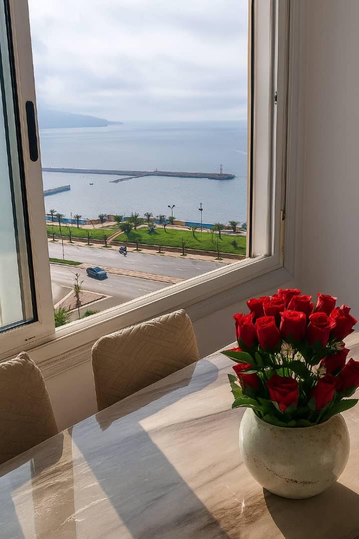 Υπέροχο πολυτελές διαμέρισμα σε πολύ καλή τοποθεσία στην καρδιά του Οράν, μπροστά στη θάλασσα (παράκτιο) με δύο υπνοδωμάτια και μια κουζίνα που ανοίγει σε ένα πολύ φωτεινό σαλόνι με κομψή και εκλεπτυσμένη διακόσμηση! Μια εκπληκτική θέα στην πόλη του Οράν. Θα βρείτε όλες τις σύγχρονες ανέσεις που θα κάνουν τη διαμονή σας αξέχαστη, που βρίσκεται στην προκυμαία του Οράν σε έναν ασφαλή δρόμο. Η περιοχή είναι γνωστή για τη μεγάλη λεωφόρο της γεμάτη με καταστήματα, καφετέριες, εστιατόρια και μέσα μαζικής μεταφοράς