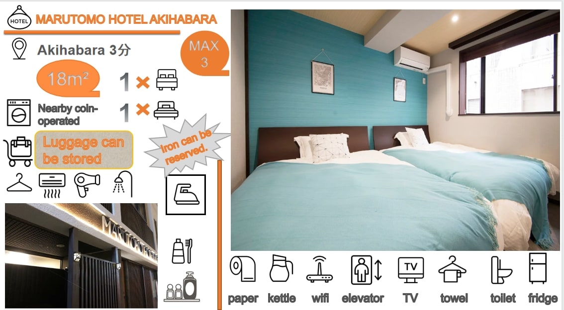 Γεια σας, ευχαριστούμε που μας παρακολουθείτε, είμαστε ένα μοναδικό ξενοδοχείο στο Τόκιο :) #Εξαιρετική τοποθεσία, 6 λεπτά με τα πόδια από την Ακιχαμπάρα #Βολική μεταφορά, 6 γραμμές μετρό και τρένου #Μικρό αλλά άνετο δωμάτιο ξενοδοχείου #Ήσυχο περιβάλλον, που βρίσκεται στην επιχειρηματική περιοχή Akihabara αλλά ήσυχο #Εστιατόρια και παντοπωλεία, σε μικρή απόσταση #Πλήρεις εγκαταστάσεις #Δωρεάν WiFi #Ένα κρεβάτι πλάτους 1,4 μ.