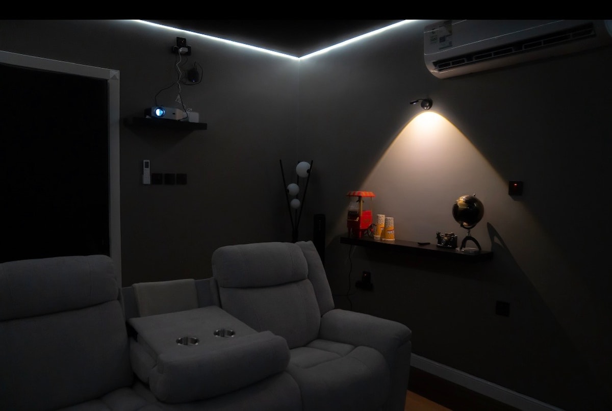 Απολαύστε μια πολυτελή διαμονή στη Σουίτα Ora Δύο υπνοδωμάτια στην καρδιά του Αλ-Κχόμπαρ Περιλαμβάνει έναν κινηματογράφο με οθόνη 100 ιντσών και ηχοσύστημα, μια γωνιά με καφετιέρα εσπρέσο και μια επαγγελματική μηχανή ποπ κορν για να ολοκληρώσει την ατμόσφαιρα του κινηματογράφου 🍿🎥 Διάφορα παιχνίδια αναψυχής για να διασκεδάσετε τους επισκέπτες 🎲 και μια κομψή εσωτερική κούνια Και πλήρως εξοπλισμένη κουζίνα με τις πιο σύγχρονες ηλεκτρικές συσκευές. 👩🍳 Το κυρίως δωμάτιο έχει οθόνη 65 ιντσών. Μια ειδική τοποθεσία κοντά στο Dhahran Expo, το Al-Raka Corniche και το Al-Mousa Park. Check-in χωρίς παρουσία οικοδεσπότη για απόλυτη ιδιωτικότητα και άνεση. Ιδανικό για οικογένειες ή επαγγελματίες ταξιδιώτες