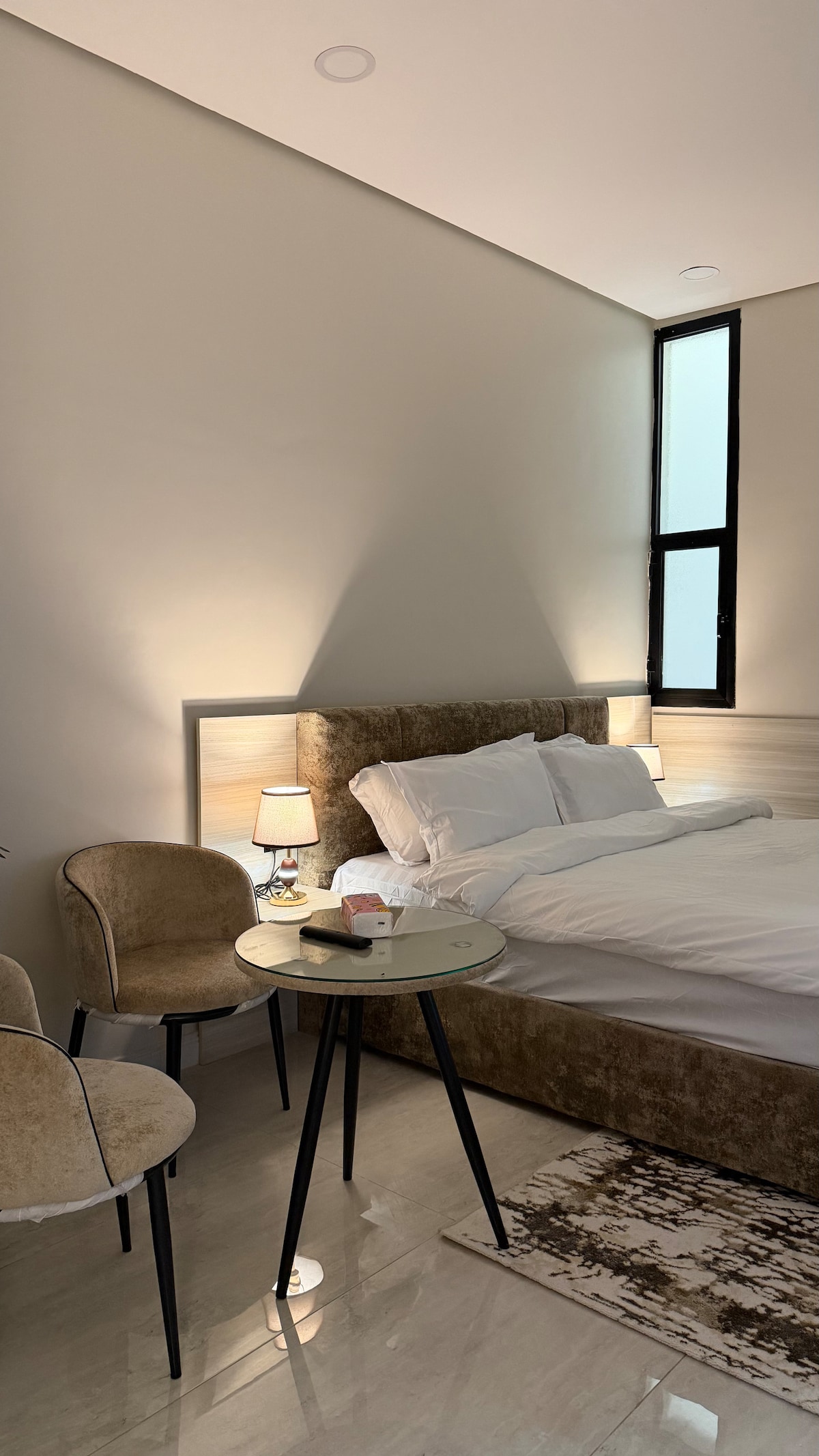 Ένα πολυτελές διαμέρισμα ξενοδοχείου που βρίσκεται στην καρδιά της πόλης του Khobar, μέσα σε μια εκλεπτυσμένη και ήσυχη γειτονιά, λίγα λεπτά από το Corniche, την οδό Prince Turki και την πλατεία Hess. Διαθέτει στρατηγική τοποθεσία που συνδυάζει την εγγύτητά του με τις πιο ζωτικές περιοχές και τα ήσυχα καταλύματα. Επιπλωμένο με πολύ μοντέρνα έπιπλα, περιέχει ένα πολυτελές τζακούζι, με προσεγμένο φωτισμό που προσθέτει ζεστασιά και κομψότητα στον χώρο. Σημείωση: Απαγορεύεται αυστηρά η διεξαγωγή πάρτι ή συναθροίσεων, προκειμένου να διατηρηθεί η ιδιωτικότητα και η άνεση του πληθυσμού. (Ασφάλεια 500 SAR που θα επιστραφεί μετά την αναχώρηση)