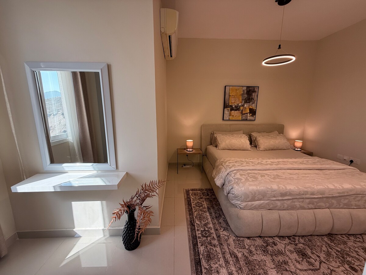 Νέο διαμέρισμα 1 υπνοδωματίου με μπαλκόνι, σαλόνι και 2 τουαλέτες. Ωραία έπιπλα. Εξοπλισμένο με WiFi υψηλής ταχύτητας, κρεβάτι και ντουλάπα, καναπέ, έξυπνη τηλεόραση 50 ιντσών, δορυφορική τηλεόραση και δωρεάν πρόσβαση στο Netflix, σίδερο, πιστολάκι μαλλιών, ηλεκτρική σκούπα, κλιματισμό με αεραγωγούς, οροφή με φώτα LED. Μπορείτε να απολαύσετε τη δωρεάν πισίνα, το γυμναστήριο και την παιδική χαρά και τον χώρο ψησίματος μπάρμπεκιου. 5 λεπτά με το αυτοκίνητο από εμπορικά κέντρα, 15-20 λεπτά από το αεροδρόμιο. 20 λεπτά με το αυτοκίνητο από την παραλία, 20 λεπτά με το αυτοκίνητο από την παλιά αγορά, δίπλα σε θέα με αμμόλοφους.