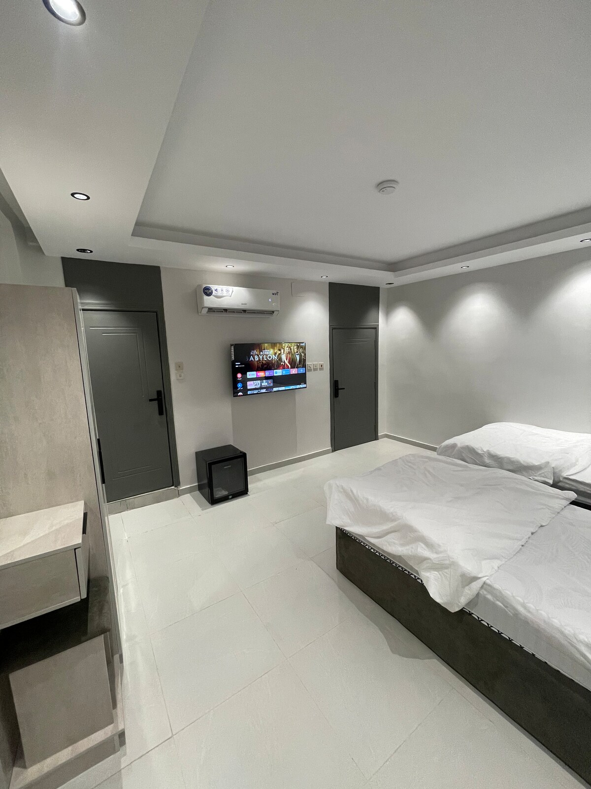 استوديو ماستر فاخر يحتوي على: • سرير ماستر مريح لضمان نوم هادئ. • منطقة جلوس أنيقة مع كنب مريح. • تلفزيون عالي الوضوح للاستمتاع بالمشاهدة. • ركن قهوة مجهز لتحضير المشروبات الساخنة. • مطبخ جاهز . • حمام خاص مجهز بكافة الاحتياجات من شامبو، صابون، وجل استحمام لراحة تامة. الاماكن القريبه منه : الحرم النبوي الشريف اقل من ١٠ دقائق محطة قطار الحرمين اقل من ١٠ دقائق مطار الامير محمد بن عبدالعزيز اقل من ١٥ دقيقة