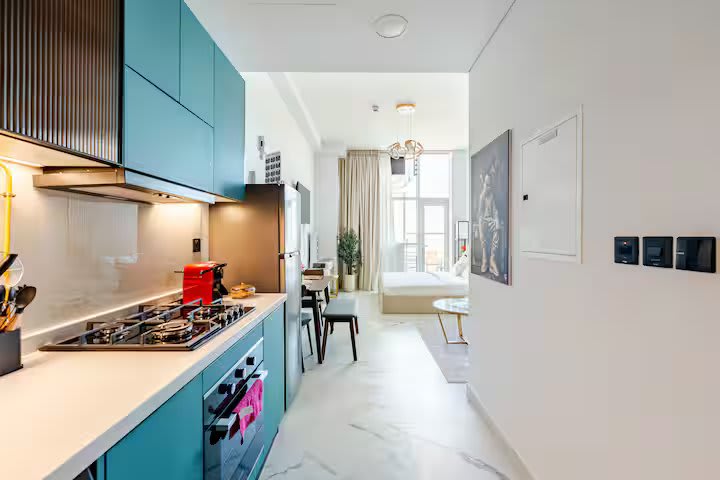 Αποδράστε σε ένα στούντιο στο Ντουμπάι, ένα καταφύγιο πολυτέλειας όπου μια ιδιωτική πισίνα αντικατοπτρίζει τον ατελείωτο ουρανό της ερήμου. Αυτό το κομψό καταφύγιο, μια τέλεια αγκαλιά άνεσης και ευκολίας, ψιθυρίζει σύγχρονες απολαύσεις και μια τοποθεσία που τραγουδάει περιπέτεια. Περιηγηθείτε για να ανακαλύψετε την καρδιά του Ντουμπάι, όπου σας περιμένουν ψώνια, φαγητό και πολιτιστικοί θησαυροί. Επιστρέψτε στην ιδιωτική σας όαση, όπου η πισίνα λάμπει, αντανακλώντας την εκπληκτική ομορφιά που σας περιβάλλει. Είναι ένα όνειρο για τους εραστές ή για την μοναχική ψυχή