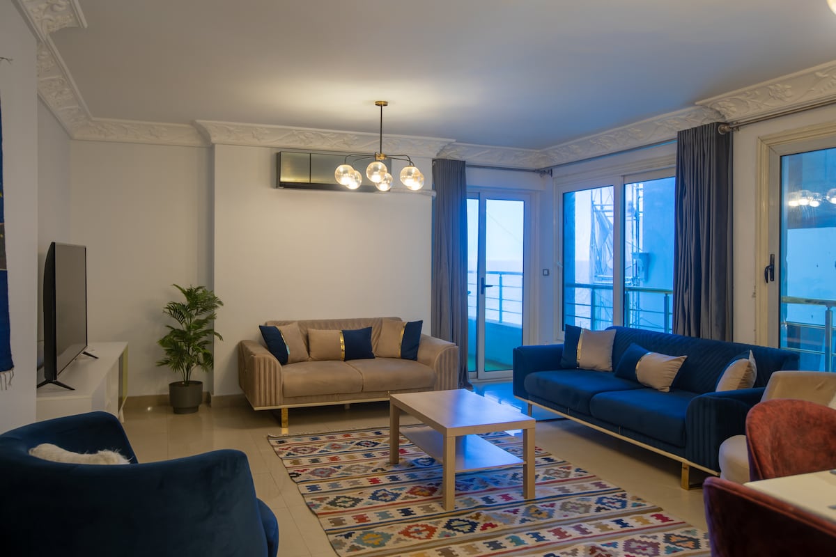 🏖️ Πολυτελές Παραθαλάσσιο Διαμέρισμα στο Sporting, Αλεξάνδρεια | Αξέχαστη Απόδραση! ✔️ Πανοραμική θέα στη θάλασσα: Ξυπνήστε με κύματα και μαγευτική θέα ! ✔️ Κομψή διαρρύθμιση: άνετα υπνοδωμάτια, κομψό σαλόνι, μοντέρνα κουζίνα. ✔️ Ατελείωτη ψυχαγωγία: Έξυπνη τηλεόραση 55"με Netflix και Shahid VIP + Wi-Fi υψηλής ταχύτητας. ✔️ Ασφάλεια: 24 ώρες το 24-ωρο , ασανσέρ. 📍 Βασική τοποθεσία: Βήματα από την παραλία 🌊 – κολυμπήστε ή περπατήστε το ηλιοβασίλεμα! Τα κορυφαία εστιατόρια/καφετέριες της Αλεξάνδρειας ☕ Κοντά στα αξιοθέατα και τα ψώνια της Αλεξάνδρειας.