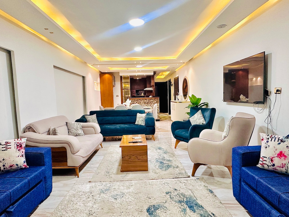 Αυτός ο κομψός χώρος διαμονής είναι ιδανικός για ομαδικά ταξίδια. -Ultra Super Lux Fully Furnished apartment '' Area 130 m'' *** Σημειώστε ότι φιλοξενούμε μόνο οικογένειες - 8ος όροφος '' διαθέσιμο ασανσέρ '' Έτοιμος/η για μετακίνηση Κορυφαία τοποθεσία - Όλα τα δωμάτια διαθέτουν κλιματισμό. -Υπέροχη θέα στη θάλασσα -2 υπνοδωμάτια + μεγάλο σαλόνι + εντοιχισμένες συσκευές κουζίνας + μπάνιο + μπαλκόνι με θέα στη θάλασσα + πλυντήριο ρούχων + ψυγείο + φούρνος + τηλεόραση + φούρνος μικροκυμάτων + εστία + ζεστό νερό - Νέα τελειώματα, νέα έπιπλα και όλες οι συσκευές. - Δωρεάν WIFI - Ασφάλεια.
