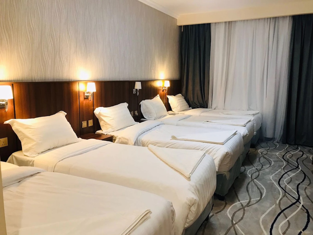 Stay just steps away from Masjid Nabawi in this elegant deluxe room located in the heart of Madinah city centre. Suitable for solo travellers, families, and groups. Comfortable rooms with air-conditioning, private bathrooms, bidets, free toiletries, showers, slippers, TV, and electric kettles. Guests can enjoy free WiFi, lift, 24-hour front desk and room service. incase of no show: No Refund/Change Allowed. the Entire Amount would be non refundable.
