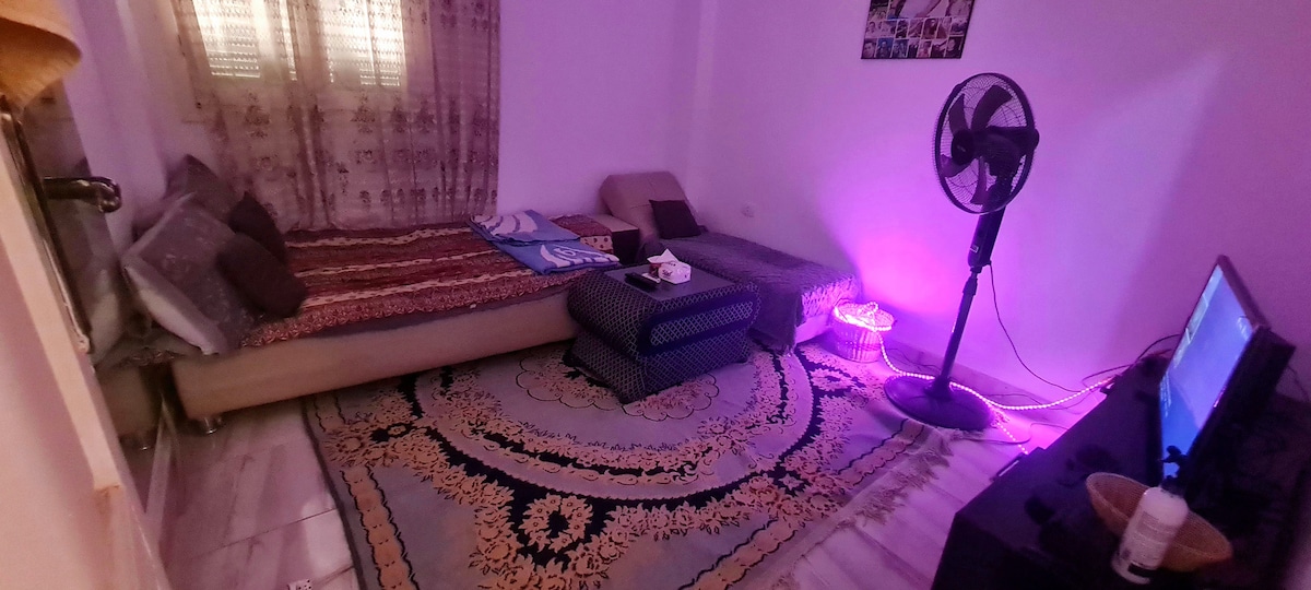 5 λεπτά από το διεθνές αεροδρόμιο του Καΐρου Ένα διαμέρισμα 120 τετραγωνικών μέτρων με 2 υπνοδωμάτια, συμπεριλαμβανομένων 2 κρεβατιών το καθένα (1 υπέρδιπλο κρεβάτι και 3 μεσαία κρεβάτια), 1 μπάνιο και κουζίνα με 2 ψυγεία και πλυντήριο πιάτων. Συμπεριλαμβάνεται ασανσέρ. Δύο τηλεοράσεις με δέκτη, πλυντήριο ρούχων, 2 ηλεκτρικές σκούπες, θερμοσίφωνας, φορητή σκάλα, 2 ανεμιστήρες και 2 σταθερά τηλέφωνα
