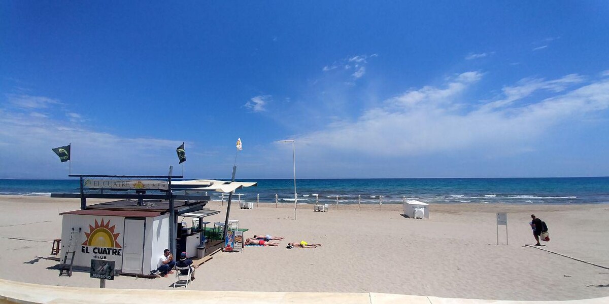 Apartment next to the beach, with swimming pool (1Jun-1Oct.), 2 bedrooms, for up to 6 persons (one room with a double bed and bunk bed and another with two single beds, plus a sofa bed in the living room). Air conditioning in all rooms (*from spring 2025*). With Wifi and smartTV! Urbanization with swimming pools, tennis courts, paddle tennis, basketball, football, barbecue area, children's playground,... With supermarkets and restaurants very close, tram station, and the best beaches!