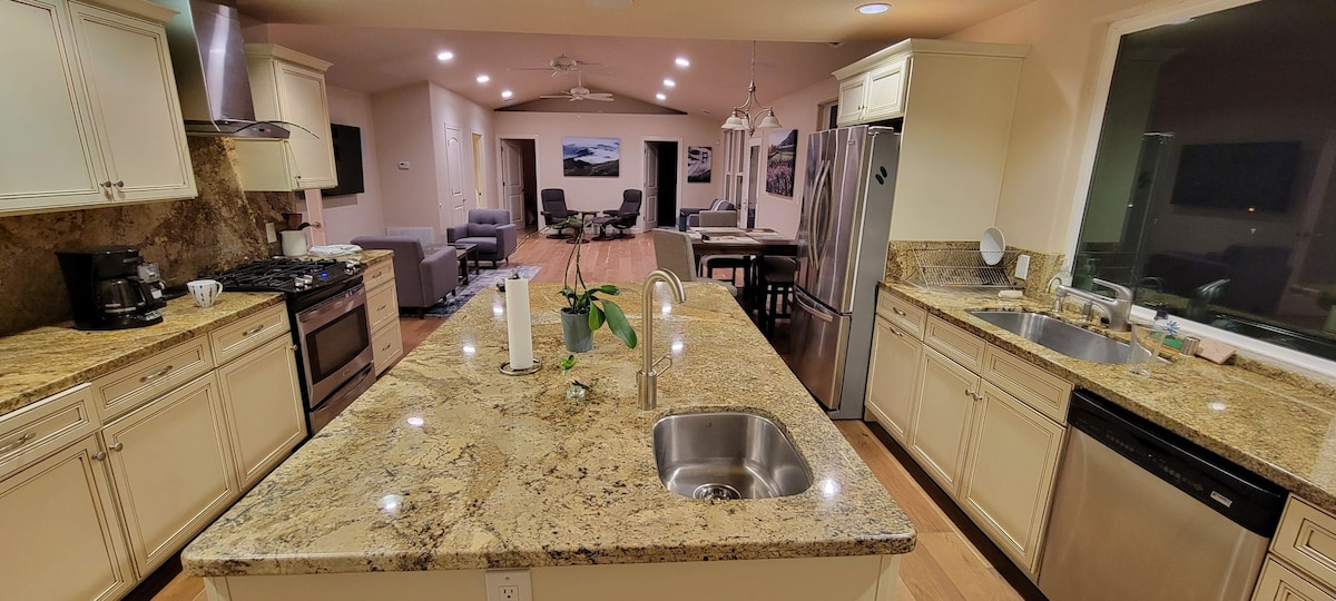 Gorgeous new guest house tucked away from it all and yet close to Downtown Walnut Creek! Walnut Creek is truly a gem of a city right out side San Francisco with cutting-edge restaurants and retail shopping. Staying in our guest house will give you a taste of the country in a organic setting of the yard. This open floor plan is bright and airy, spacious kitchen with large peninsula view for eating and socializing. Beautiful front porch perfect for warm summer nights, with views of the hills.