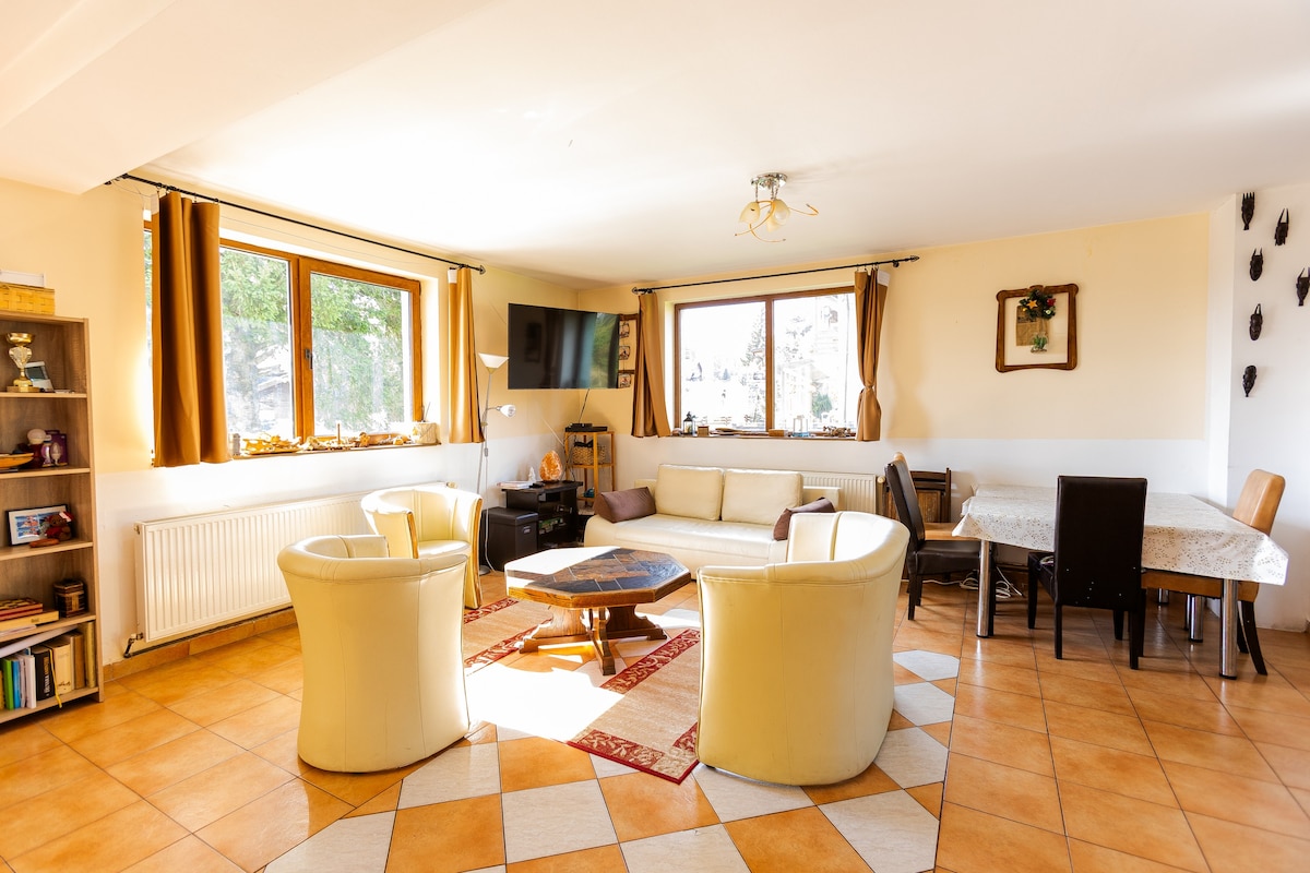 Το εξοχικό σπίτι βρίσκεται σε ένα παραμυθένιο τοπίο στα 1400 μέτρα πάνω από την επιφάνεια της θάλασσας και διαθέτει όλες τις υπηρεσίες κοινής ωφέλειας για να φορτίσετε τις μπαταρίες σας για ένα Σαββατοκύριακο ή ακόμα και για μια ολόκληρη διαμονή. Μια όαση σιωπής για βόλτα, εκπληκτικές ιστορίες γύρω από τη φωτιά, κάνοντας μπάρμπεκιου με φίλους ή οικογένεια ή εκμεταλλευόμενοι τις εγκαταστάσεις του θέρετρου: σκι, έλκηθρο ή σνόουμπορντ στο Platos και το Oncesti Arena. Το καλοκαίρι μπορείτε να νιώσετε την αδρεναλίνη στο πάρκο περιπέτειας Arka Park. Έχουμε 6 δωμάτια με 2 κρεβάτια το καθένα, 2 μπάνια, ένα ευρύχωρο σαλόνι με τζάκι και τηλεόραση, εξοπλισμένη κουζίνα. Έξω, έχουμε μπάρμπεκιου και κιόσκι για τις ηλιόλουστες μέρες. Η κοντινή απόσταση από την πόλη του Σιμπίου (25 χιλιόμετρα) , στην περιοχή της Τρανσυλβανίας, σας προσφέρει την ευκαιρία να απολαύσετε τις εκδηλώσεις που διοργανώνονται συχνά εκεί. Κατόπιν αιτήματος, μπορούμε να κανονίσουμε τη μεταφορά από το Σιμπίου (σιδηροδρομικός σταθμός ή αεροδρόμιο). Για κρατήσεις, καλέστε στο 0040744764251 ή στείλτε email στη διεύθυνση chalet.karina@gmail.com