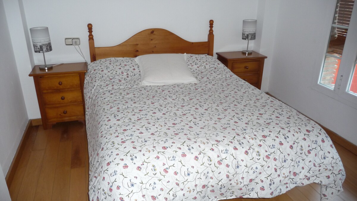 Habitación tipo suite, con baño completo dentro de la habitación, recién reformada. Mi hijo Leo se ha independizado y actualmente vivo con mi hija Belinda y aprovechamos para alquilar su habitación. En el centro de Granada, en un barrio que a pesar de estar a 5 minutos de la Catedral, no es turístico, es residencial, por lo que disponemos de todos los servicios necesarios. Zona peatonal, aunque se puede acceder con el coche para descargar, hay parking de pago alrededor. Sin ascensor, piso 1.
