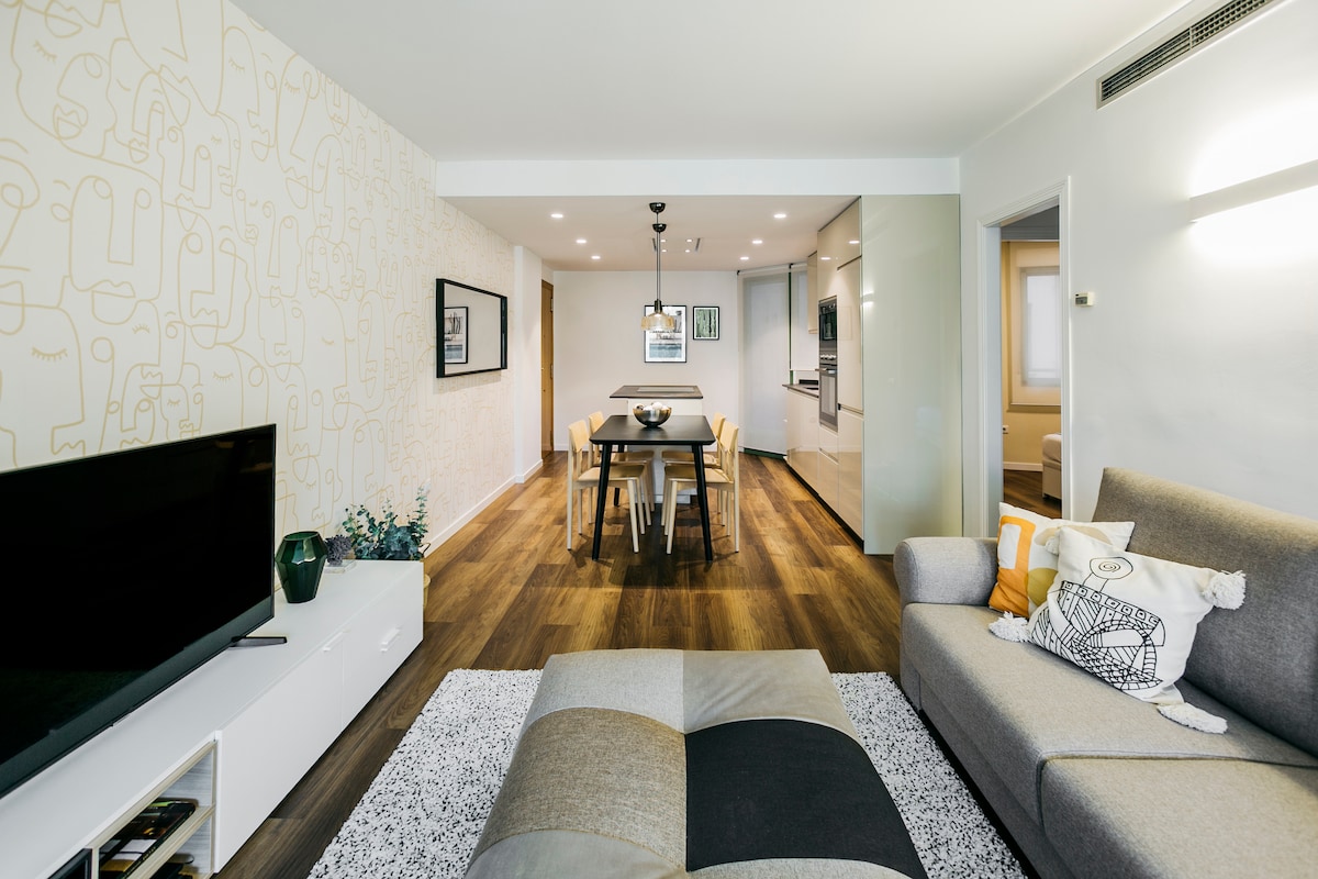 Sentirse como en casa, en un encantador y cálido apartamento completamente nuevo el cual se ha diseñado pensando cada detalle, para brindar una estadía confortable y sin preocupaciones. Su espacialidad, su completo equipamiento y sus gestos de calidad, busca ofrecerte una estancia llena de buenos momentos. Situado en El Barrio del Botanico, en un primer piso (sin ascensor) a unos metros de la entrada del Casco Antiguo Valencia y cerca de los sitios más relevantes y turísticos de la ciudad.
