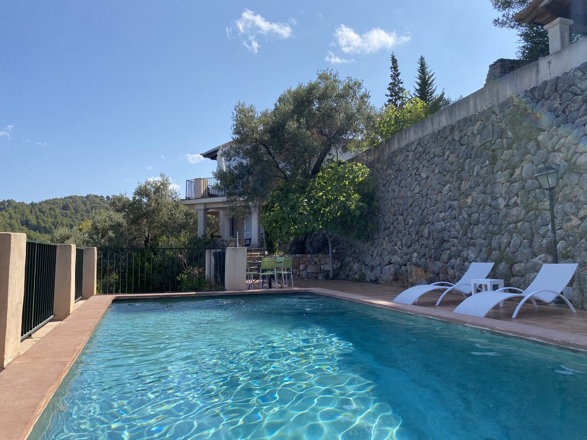 Cozy house with swimming pool in the north coast of Mallorca with awesome views to the sea and to the mountain. In it´s garden you can relax and enjoy the incredible mediterraneans´ sunset, with family or friends. The house is divided in two floors. On the top floor there are three double rooms and a full bathroom. The rooms are wide and bright. In the low floor there are a dinning room, living room with wood burning stove a bathroom with shower and the kitchen.