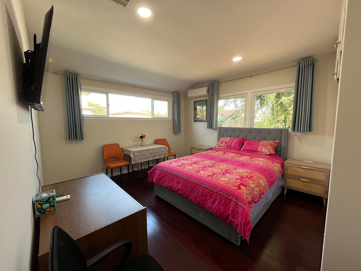 🚪 A private room with an independent entrance.This Room 2 is a private room with its own entrance. On the left, it connects to another suite, Room 3. And other side is graden. 🚿 Your own bathroom and kitchen,Queen Size bed, three seeter leather sofa 🛠️ Self Check-In & Private Space 🏡 Location in Alhambra – 6th Street (Between Main St & Valley Blvd) 🚗 Easy Transportation Access 🚶♂️ 8-minute walk to Bus stop 76 ✈️ 35-minute drive to Los Angeles International Airport 🐾 No Pets Allowed