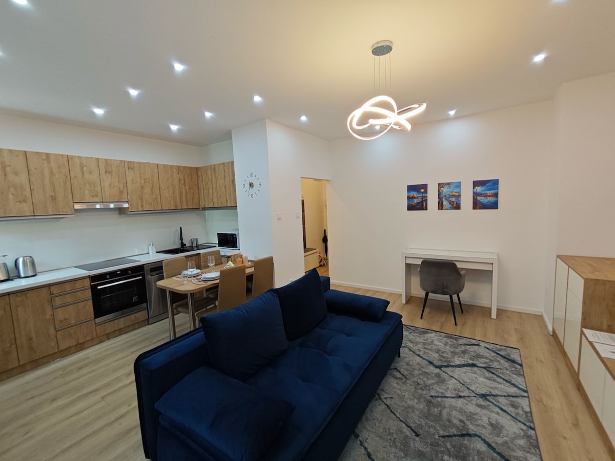Τα κορυφαία αξιοθέατα της πόλης είναι μόλις λίγα βήματα μακριά: τα διάσημα Ιαματικά Λουτρά Rudas, η Μεγάλη Αγορά, η γοητευτική οδός Váci, η εκπληκτική Γέφυρα της Ελευθερίας και η εκπληκτική θέα από τον λόφο Gellért. Με άνετα καφέ, εξαιρετικά εστιατόρια και ένα εμπορικό κέντρο κοντά, όλα όσα χρειάζεστε είναι ακριβώς δίπλα σας. Επιπλέον, το τραμ και το μετρό σταματούν ακριβώς μπροστά από το κτίριο, διευκολύνοντας την πρόσβαση οπουδήποτε στην πόλη - ή ακόμα και κατευθείαν στο αεροδρόμιο με μια απλή σύνδεση.