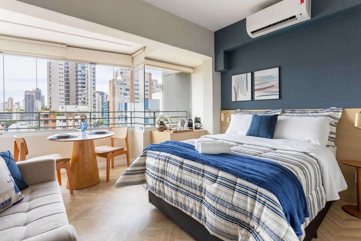 Νέο και πλήρες στούντιο, διακοσμημένο για να νιώσετε σαν στο σπίτι σας. Πλήρως εξοπλισμένο, με εξαιρετική τοποθεσία: μπροστά από το Allianz Park, δίπλα στα εμπορικά κέντρα Bourbon και WestPlaza, 5 λεπτά από το Θέατρο Bradesco, 10 λεπτά από το Pacaembu Arena και το Espaço Unimed, κοντά σε εστιατόρια, μπαρ και αγορές. - Κτίριο με πλυντήριο, πλήρες γυμναστήριο και 24ωρη δυνατότητα άφιξης. - Απέχει 20 λεπτά από το αεροδρόμιο Congonhas. - Χώρος στάθμευσης -> Ανάλογα με τη διαθεσιμότητα/χρεώνεται προμήθεια. •Απαγορεύεται το κάπνισμα.🚭