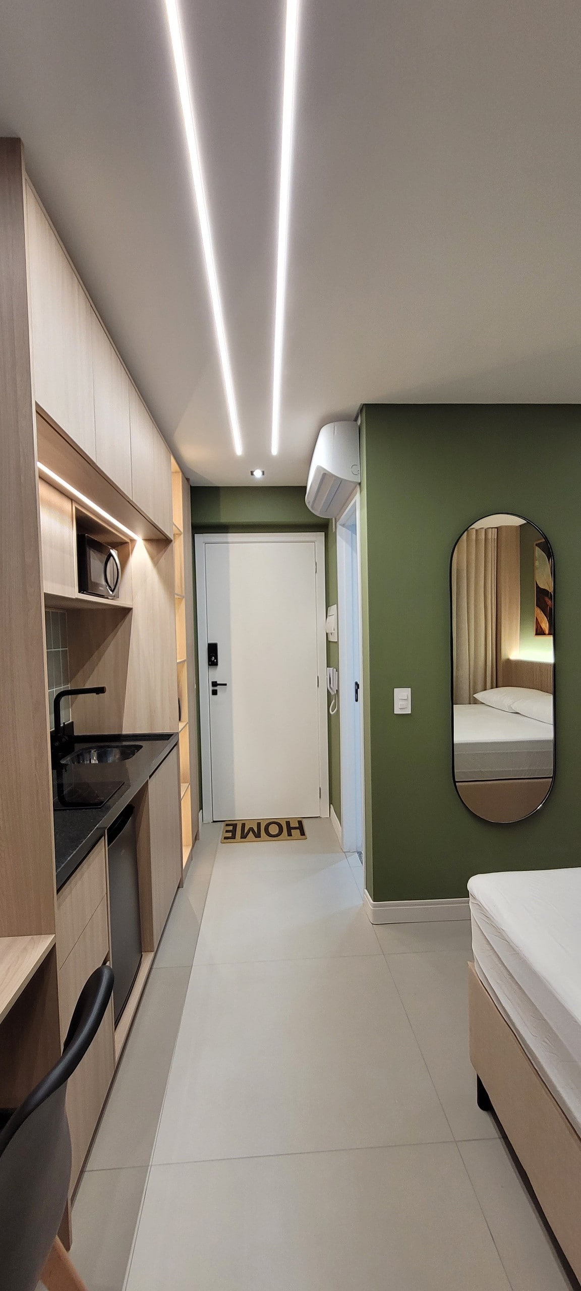 Apto inteiro, novo e aconchegante, bem localizado, à 4 min a pé do Allianz Parque. Ao lado de diversos comércios, meios de transportes, parques, shoppings, pontos turísticos e edifícios empresariais. Apto moderno com 18metros2, possui cama de casal, secador de cabelo, cozinha equipada, cafeteira de cápsulas Nespresso, frigobar, micro-ondas, cooktop de 1 boca, Smart TV e muitas outras comodidades. Tenha a segurança de um cond com portaria 24h. 1 vg de garagem rotativa e sujeito a disponibilidade.
