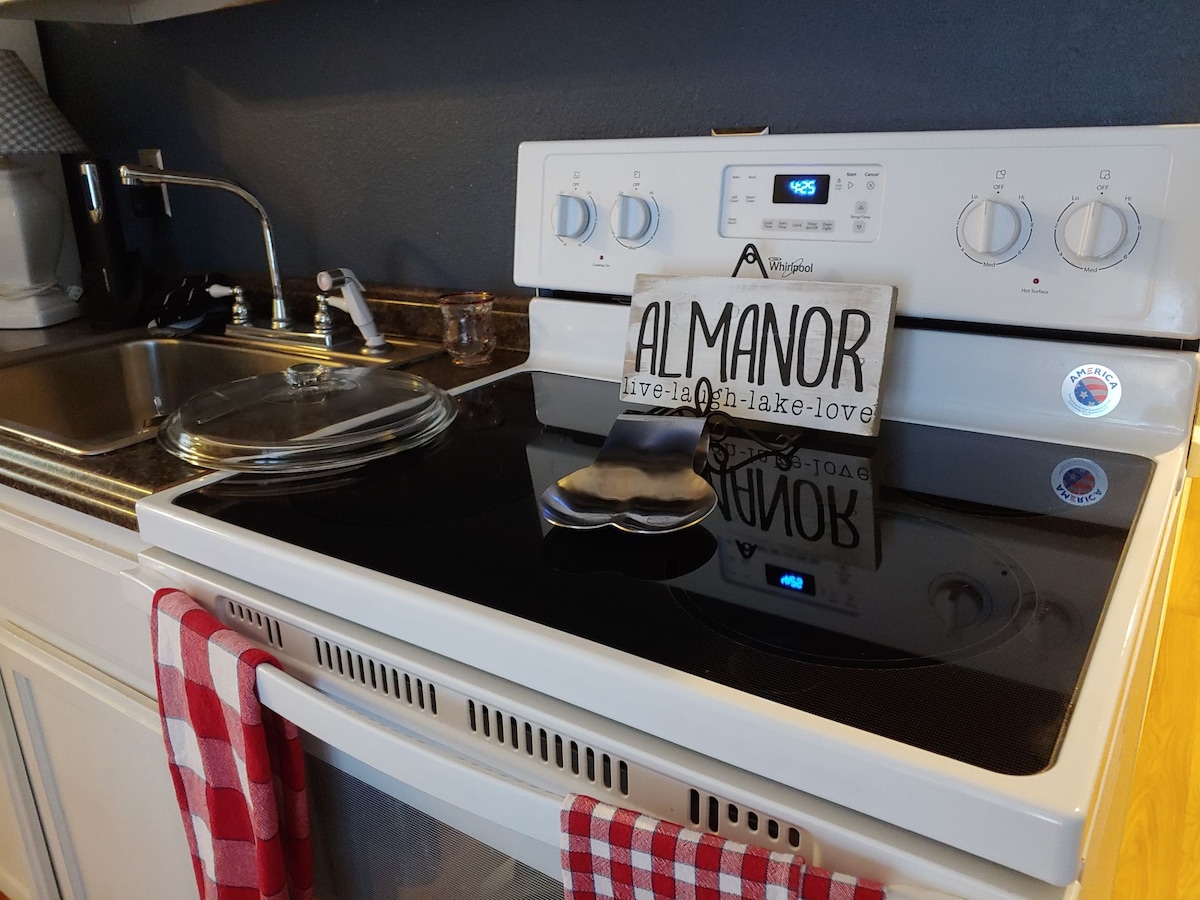 Ξεχάστε τις ανησυχίες σας σε αυτόν τον ευρύχωρο και γαλήνιο χώρο. Αυτό το κατάλυμα με 3 υπνοδωμάτια, 3 μπάνια και επιπλέον δωμάτιο στον κάτω όροφο με 2 καναπέδες-κρεβάτια queen με αφρό μνήμης. Απολαύστε τον καφέ σας στη βεράντα με απέραντη θέα στη λίμνη Αλμανόρ. Κουζίνα με πλήρεις παροχές για να μαγειρέψετε ή να φτιάξετε δείπνο στο μπάρμπεκιου. Παίξτε οικογενειακά παιχνίδια ή μπιλιάρδο με τους φίλους σας. Δροσιστείτε με κλιματιστικό ή ζεσταθείτε με τζάκι. Κοντινή απόσταση από τη δημόσια παραλία του Γουέστγουντ για να κολυμπήσετε στη λίμνη. Δωρεάν Wi-Fi.