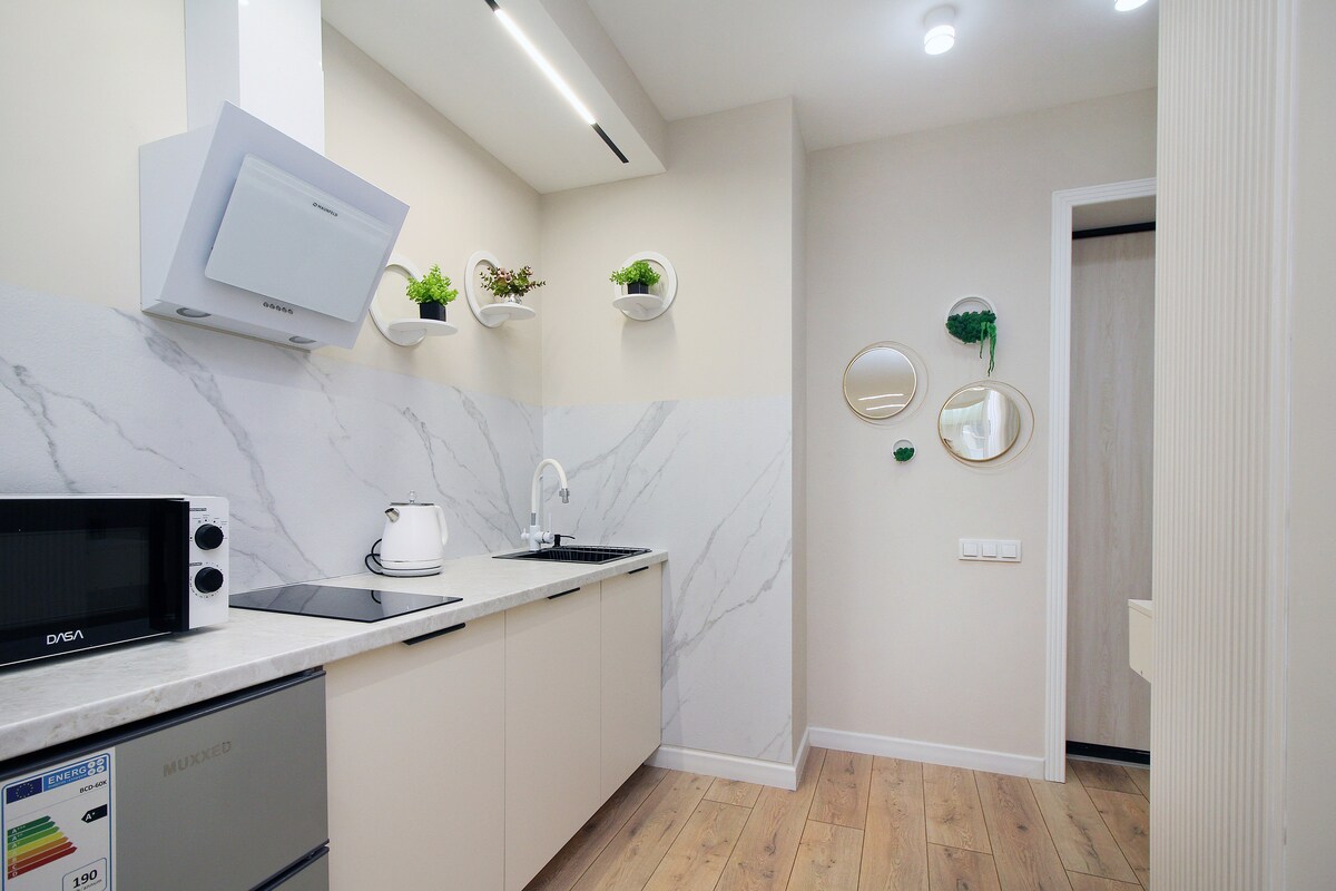 Άνετο διαμέρισμα ευρωπαϊκού στιλ με ένα υπνοδωμάτιο με ξεχωριστό υπνοδωμάτιο και ευρύχωρη ενιαία κουζίνα-σαλόνι. Τα παράθυρα βλέπουν σε μια ήσυχη αυλή. Κατάλληλο για έως 4 άτομα: διπλό κρεβάτι και καναπές. Smart TV, Wi-Fi υψηλής ταχύτητας, καθαρά σεντόνια και πετσέτες, προϊόντα υγιεινής, πλυντήριο ρούχων, κουζίνα, ψυγείο, σίδερο, πλήρη σκεύη μαγειρικής. Κοντά σε παντοπωλεία, καφετέριες, εμπορικό κέντρο, Βοτανικό Πάρκο. Άφιξη από τις 15:00, αναχώρηση μέχρι τις 12:00. Η άφιξη χωρίς παρουσία οικοδεσπότη είναι διαθέσιμη. Απαγορεύεται το κάπνισμα, απαγορεύονται τα πάρτι, ισχύουν ώρες κοινής ησυχίας