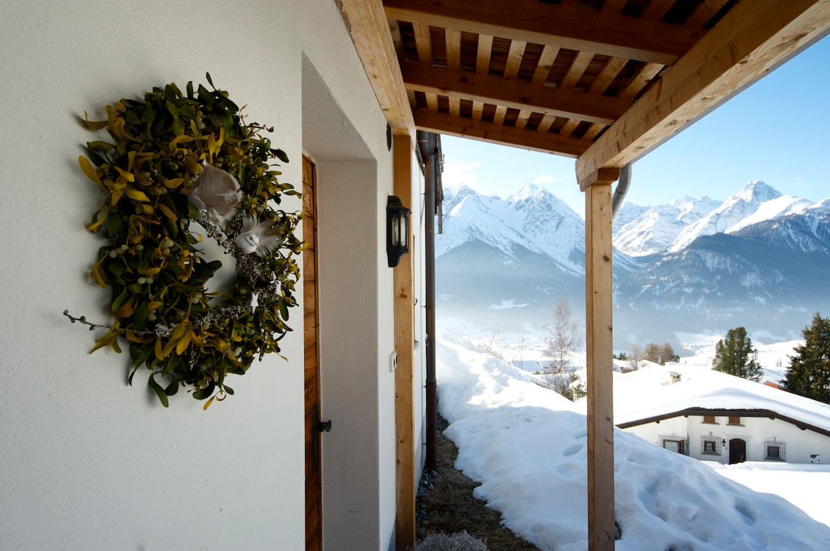 Άνετο διαμέρισμα σε παλιό σπίτι της Ενγκαντίνας με ιστορικό υπνοδωμάτιο (πρώην δικαστική αίθουσα) στην πλατεία Dorfbrunnenplatz, κοντά σε κατάστημα, σιδηροδρομικό σταθμό και εστιατόριο. Ιδανικό σημείο εκκίνησης για πεζοπορία, ποδηλασία και χειμερινά αθλήματα. Μπορείτε να αγοράσετε από τον οικοδεσπότη προϊόντα της φάρμας, όπως τυρί, αυγά και μέλι. Κατόπιν αιτήματος, μπορεί να παραγγελθεί πρωινό. Κάρτα επισκέπτη 5 CHF.-/ημέρα πρέπει να καταβληθεί επί τόπου.