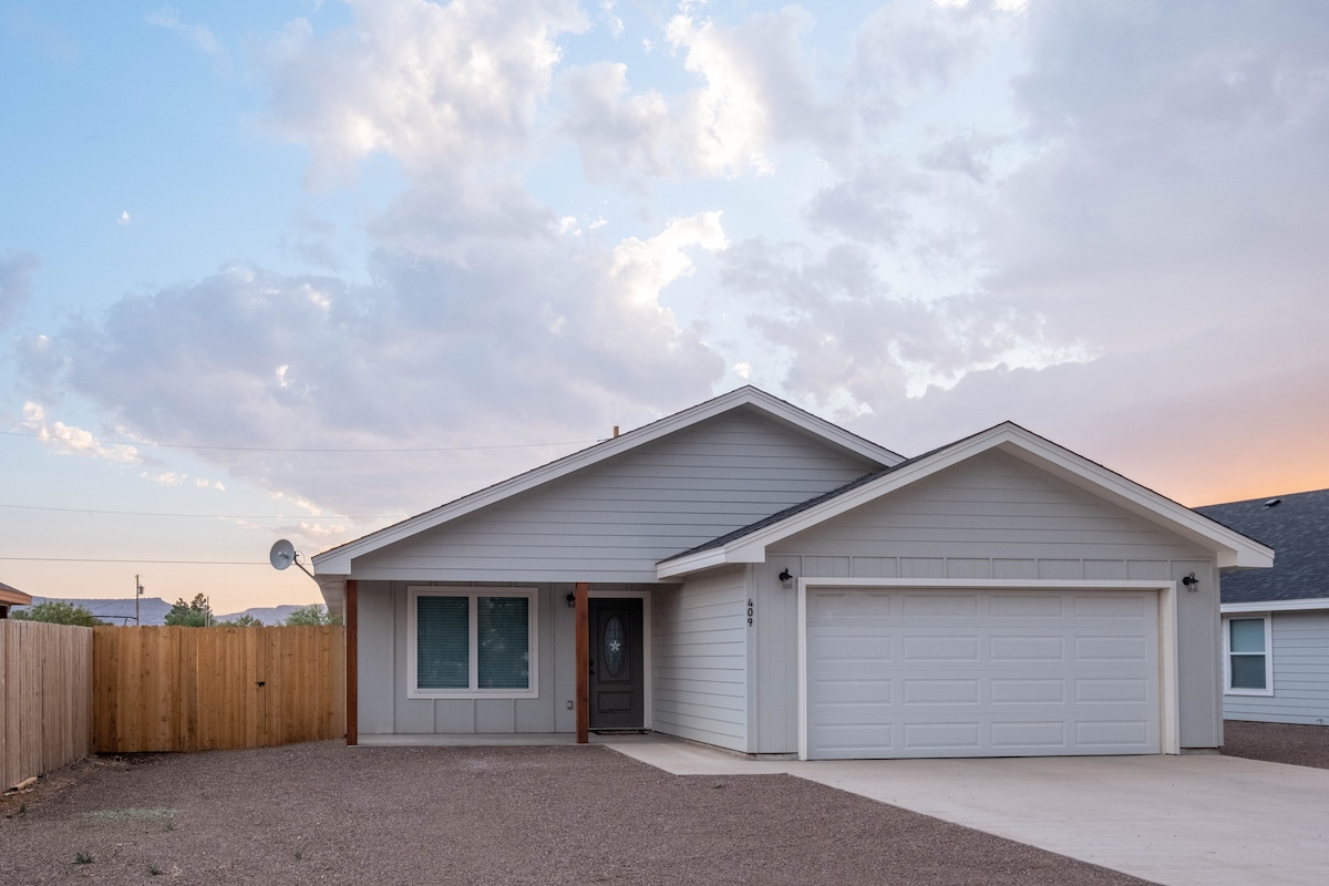 Χαλαρώστε με τους φίλους και την οικογένειά σας σε αυτό το ήσυχο, νεόκτιστο σπίτι στο Alpine. - Διασκεδάστε ολόκληρη την ομάδα με πάνω από 2 δεκάδες παιχνίδια και παζλ. - Δημιουργήστε δεσμούς με την οικογένεια και τους φίλους σας γύρω από το τζάκι. - Το γκαράζ μας για 2 αυτοκίνητα θα εξασφαλίσει προστασία από τις σποραδικές καταιγίδες με χαλάζι. Μόλις 5 λεπτά από το Sul Ross State University, 30 λεπτά από το Marfa, 50 λεπτά από το McDonald Observatory και λίγο πάνω από μία ώρα από το Terlingua και το Big Bend!