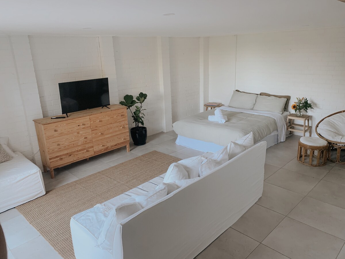 Από τη στιγμή που θα περάσετε την πύλη, θα νιώσετε τη χαλαρή ατμόσφαιρα του Μπάιρον! Απέχει 2 λεπτά με τα πόδια από το "παντοπωλείο" του Baz & Shaz, 7 λεπτά από το χωριό Suffolk και 15 λεπτά από την παραλία Tallow. Το κέντρο του πολυσύχναστου Μπάιρον απέχει 10 λεπτά με το αυτοκίνητο. Η σουίτα διαθέτει ένα διπλό κρεβάτι king size, ιδιωτικό μπάνιο, ιδιωτική είσοδο, ιδιωτική βεράντα και αυλή με τραπέζι και καρέκλες και ένα γραφείο σε μια γωνιά. Υπάρχει ένα ντουλάπι κουζίνας με φούρνο μικροκυμάτων, ψυγείο μπαρ, τοστιέρα, βραστήρα και σκεύη κατάλληλα για πρωινό και διαχείριση φαγητού σε πακέτο.