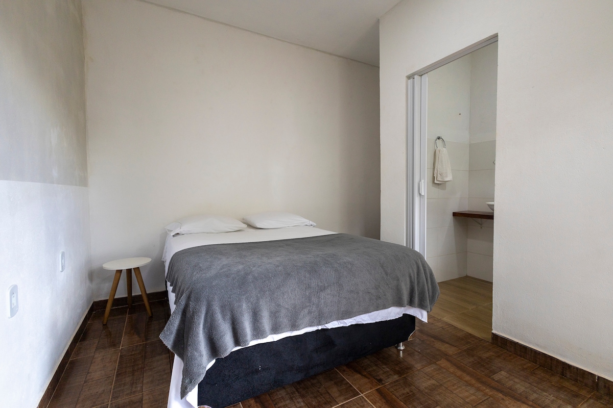 A place to rest away from the noise of the city, with the comfort of a house and an additional servisse of cleaning and breakfast, charged separately. Come relax in the silence and on one of the most starry nights, surrounded by nature, woods, lush birds and orchards with fruit harvested from the foot. • 2 km from the center of Alto Paraíso; • 3 people, 1 double suite and 1 sofa bed; • Bed linen and bath included; • Equipped kitchen and wifi;