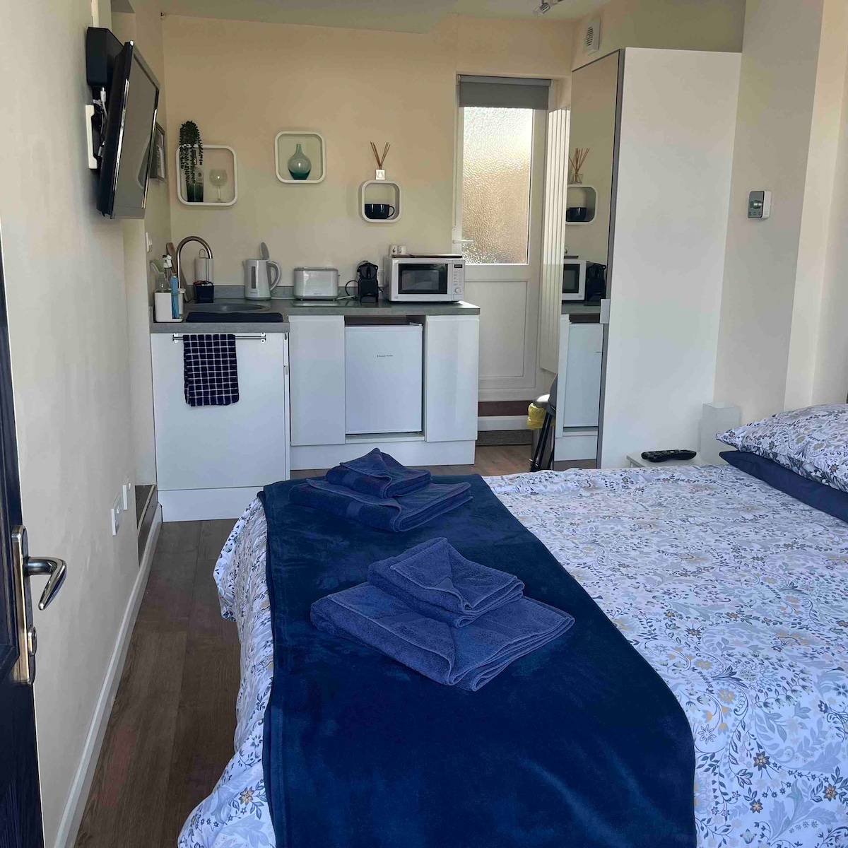 Ένα φωτεινό ελκυστικό παράρτημα, στην πόλη της αγοράς του Thornbury, στο Μπρίστολ. Κοντά σε πεζοδρόμια, ποδηλατόδρομους και εστιατόρια. Ο χώρος έχει δική του είσοδο που οδηγεί στο αυτόνομο παράρτημα, το οποίο αποτελείται από μπάνιο, κουζίνα και σαλόνι/υπνοδωμάτιο. Μεγάλο ψυγείο/καταψύκτη και φούρνο μικροκυμάτων, καθώς και κοινόχρηστες εγκαταστάσεις πλυντηρίου και χώρο στάθμευσης εκτός δρόμου. Το κέντρο της πόλης απέχει μόλις 15 λεπτά με τα πόδια και το Μπρίστολ απέχει 40 λεπτά με το αυτοκίνητο. Διατίθεται για μακροπρόθεσμη ενοικίαση, στείλτε μήνυμα για να συζητήσετε ειδικές τιμές.