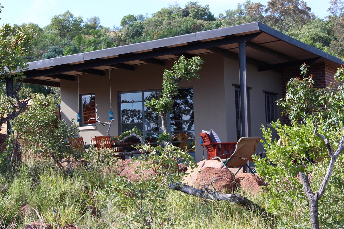 Αυτό το άνετο εξοχικό με αυτοεξυπηρέτηση βρίσκεται στον πίσω κήπο μας. Βρίσκεται σε ιδανική τοποθεσία 6 χλμ. από την πύλη Manyane του Εθνικού Πάρκου Pilanesberg. Είναι πλήρως εξοπλισμένο και μπορεί να φιλοξενήσει έως και 3 άτομα. Υπάρχουν φώτα έκτακτης ανάγκης, μια κουζίνα αερίου και ένας θερμοσίφωνας αερίου για να κάνει τη διαμονή σας πιο άνετη κατά τη διάρκεια της διακοπής ρεύματος. Υπάρχει ιδιωτικό μπάρμπεκιου/μπραάι στη μικρή βεράντα για την απόλαυσή σας. Η πισίνα στον μπροστινό κήπο έχει θέα στο βουνό Pilanesberg και προσφέρει υπέροχη θέα. Απολαύστε την.