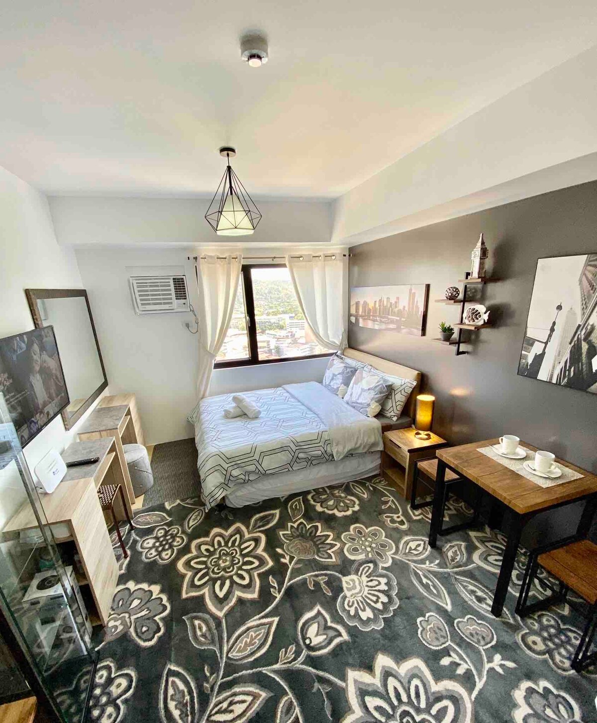 Ζήστε την αστική κομψότητα στο The Loop Towers στο Cagayan de Oro! Ιδανικό για μεμονωμένους ταξιδιώτες ή ζευγάρια, το άνετο στούντιο μας προσφέρει έξυπνη διαρρύθμιση και μοντέρνο σχεδιασμό. Απολαύστε άφθονο φυσικό φως, άνετο κρεβάτι και πλήρως εξοπλισμένη κουζίνα. Βρίσκεται στην καρδιά της πόλης με εύκολη πρόσβαση σε καταστήματα, εστιατόρια και χώρους εργασίας. Απολαύστε ασφάλεια 24 ώρες το 24ωρο για να έχετε το κεφάλι σας ήσυχο. Ιδανικό για διακοπές με WiFi και Netflix.