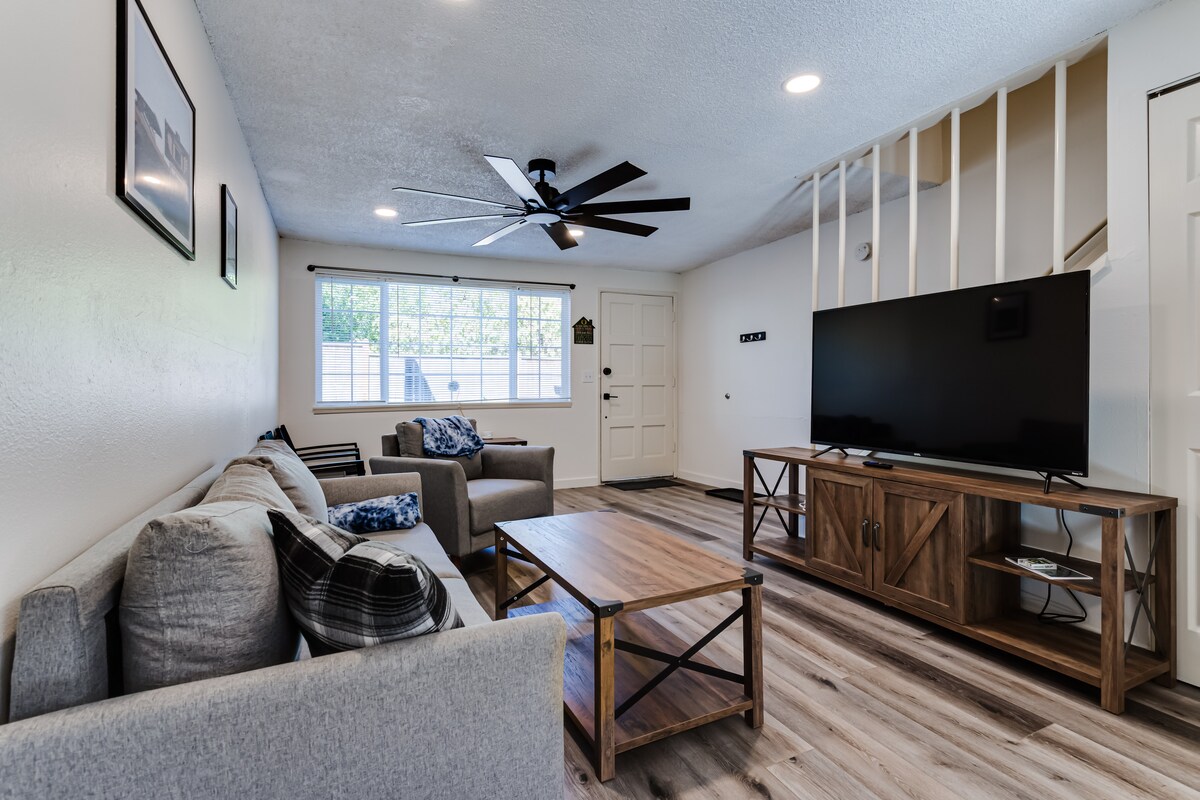 Αυτό το σπίτι ενός υπνοδωματίου βρίσκεται στο νότιο Γιουτζίν κοντά στην πανεπιστημιούπολη. Εύκολη πρόσβαση στο I-5, λίγα λεπτά από το U of O, σε κοντινή απόσταση από ένα τοπικό παντοπωλείο, εστιατόρια, οινοπωλείο και ένα από τα αγαπημένα πάρκα του Γιουτζίν με παιδική χαρά, μονοπάτια για τρέξιμο και δημόσια πισίνα το καλοκαίρι. Υπάρχει άφθονος χώρος για να κοιμηθούν έως και τέσσερα άτομα, πλήρης κουζίνα για την προετοιμασία γευμάτων και ένας μεγάλος χώρος γραφείου και γρήγορο Wi-Fi για να εργάζεστε από το σπίτι κατά τη διάρκεια του ταξιδιού σας. Αυτό το κατάλυμα διαθέτει όλα όσα χρειάζεστε για μια εξαιρετική διαμονή στο Γιουτζίν!