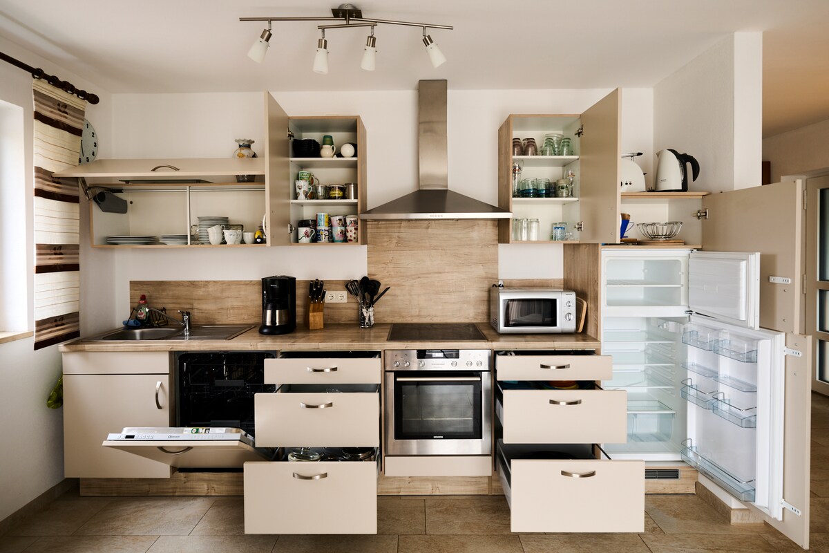 Κομψά επιπλωμένο διαμέρισμα σε ένα σπίτι διπλής κατοικίας (νέο κτίριο) με τον ακόλουθο εξοπλισμό: - Κρεβάτι 140x200m - ιδιωτικό μπάνιο - ηλεκτρικό ρολό - καφετιέρα (συμπεριλαμβανομένου του καφέ) - Φούρνος μικροκυμάτων ως συνδυασμένη συσκευή με αέρα - Ψυγείο -Τηλεόραση - WLAN - Πιστολάκι μαλλιών - Ενδοδαπέδια θέρμανση - κεντρικό σύστημα ελέγχου εξαερισμού - ξεχωριστή ηχομονωτική πόρτα με κουδούνι/ανοιχτήρι - Συρταριέρα - Τραπεζαρία - Πιάτα - δωρεάν πάρκινγκ - Δυνατότητα φόρτισης ηλεκτρικών οχημάτων - Αρχικός εξοπλισμός συμπερ. (σεντόνια, πετσέτες